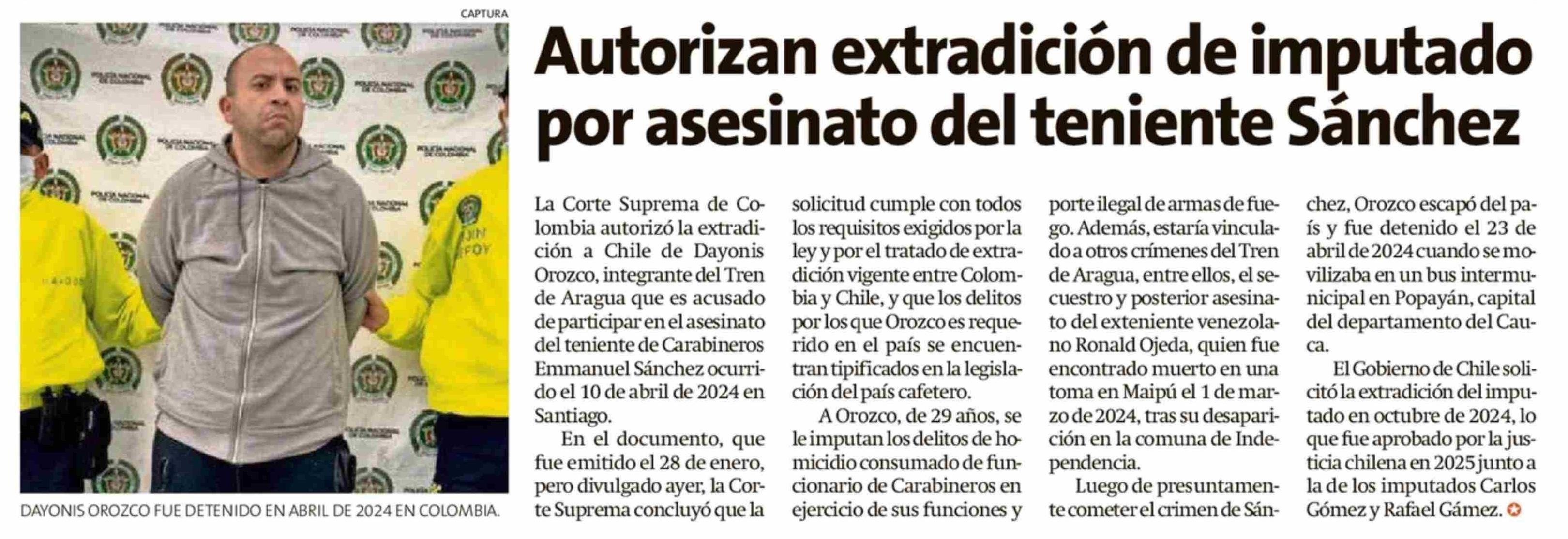 Título: Autorizan extradición de imputado por asesinato del teniente Sánchez