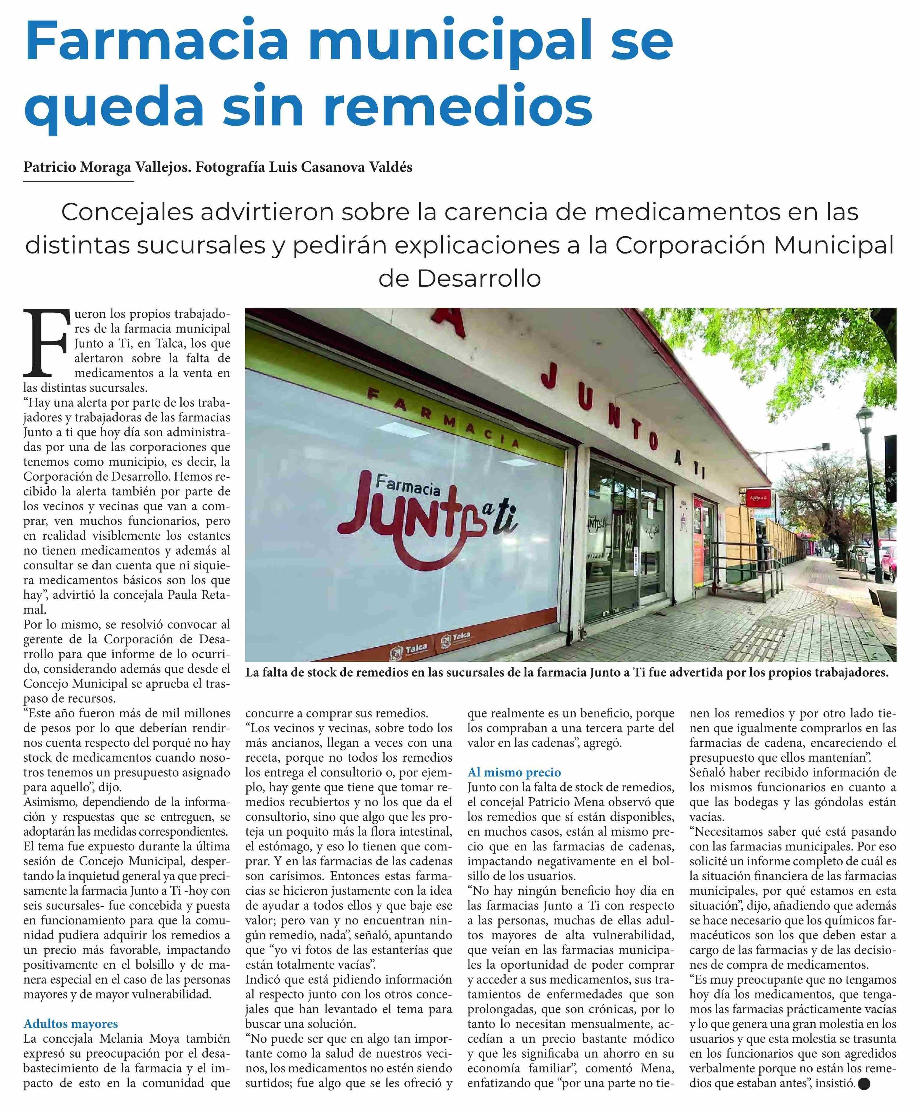 Farmacia municipal se queda sin remedios 07-06-2025 Diario Talca |