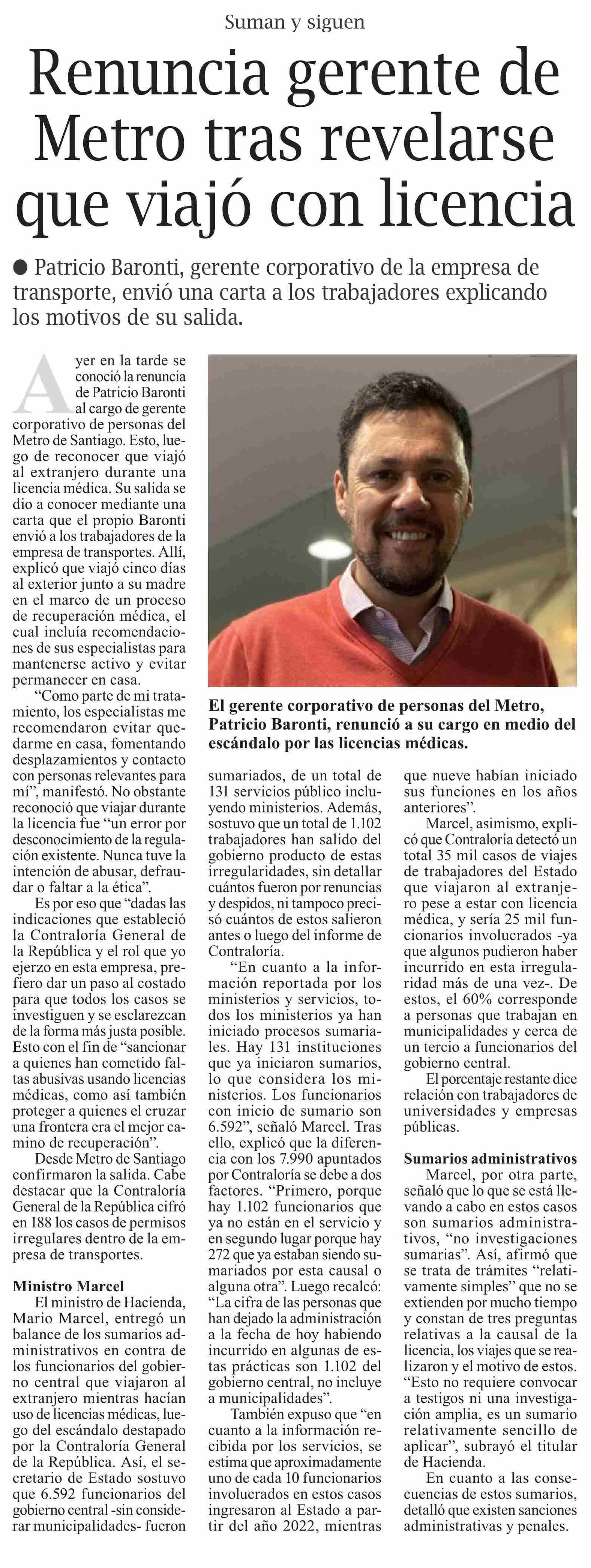 | Título: | Renuncia gerente de Metro tras revelarse que viajó con licencia |