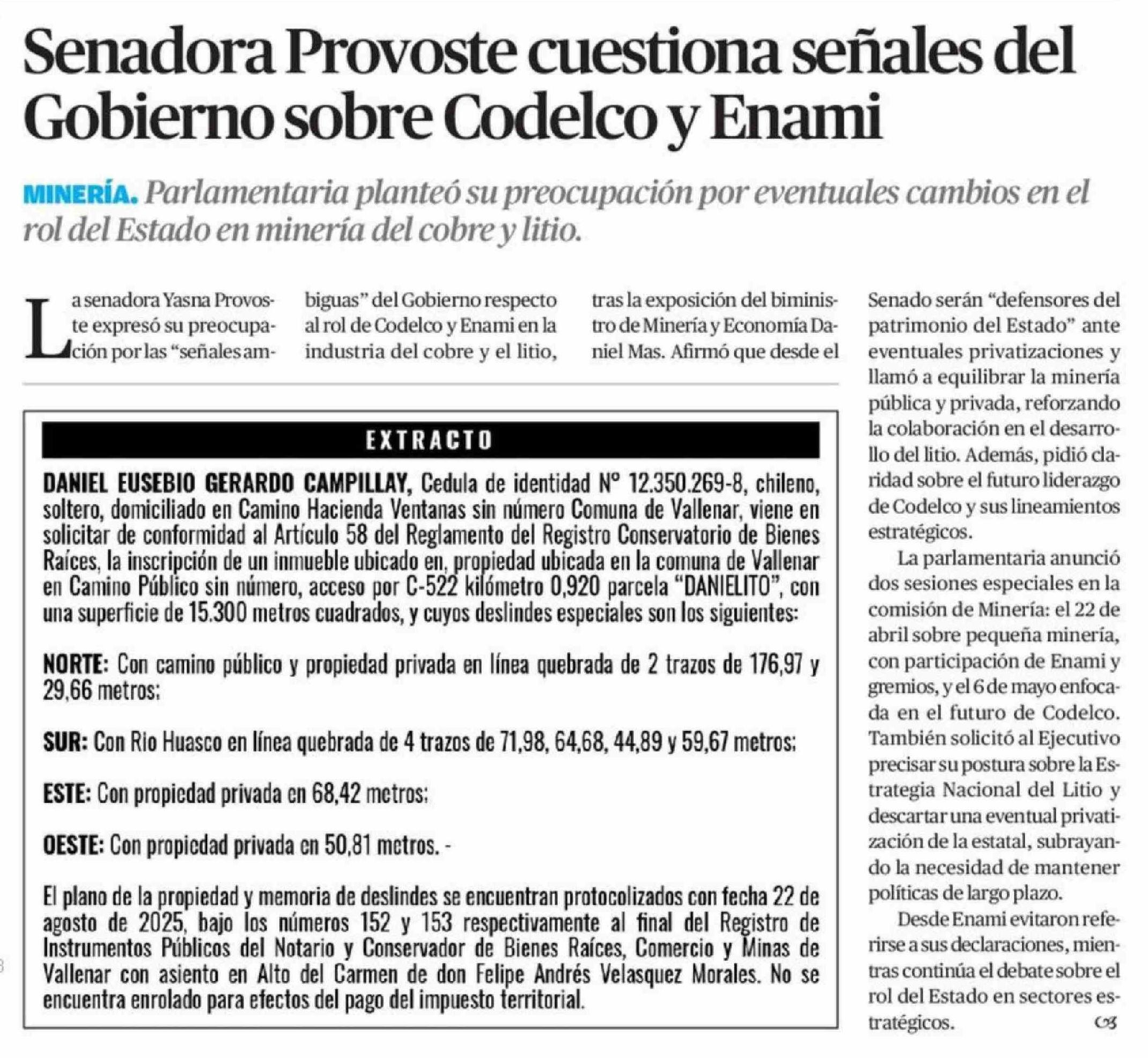 Senadora Provoste cuestiona señales del Gobierno sobre Codelco y Enami 16-04-2026 El Diario de Atacama |