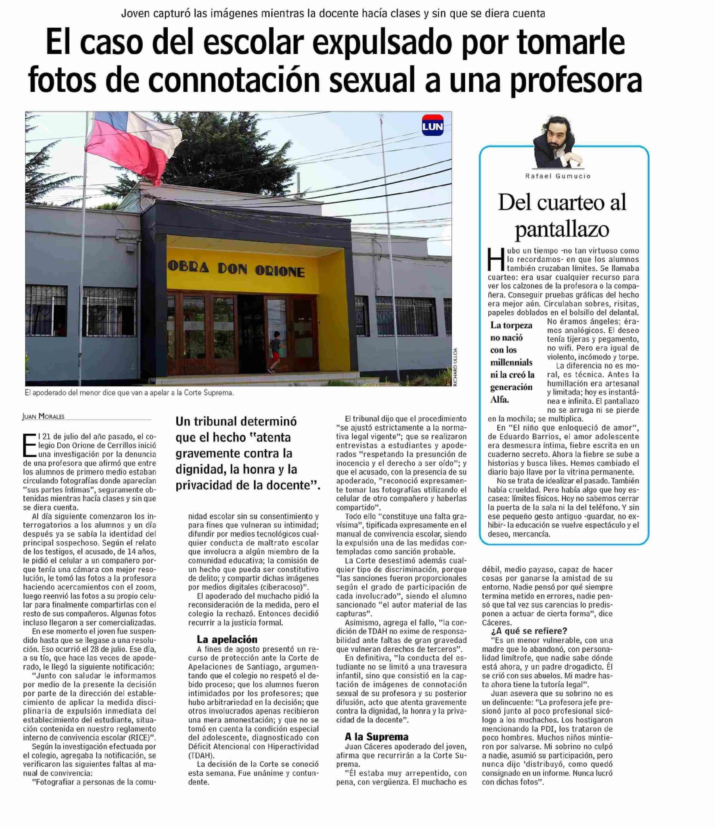 Título: El caso del escolar expulsado por tomarle fotos de connotación sexual a una profesora
