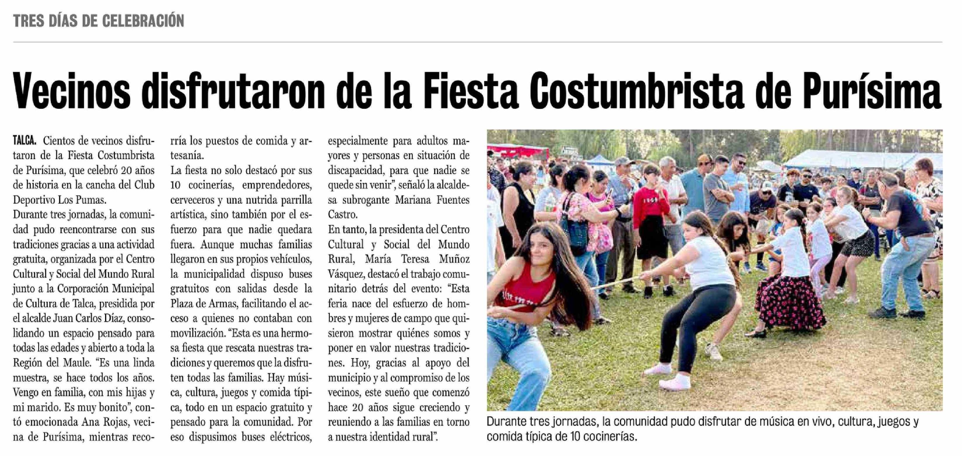 Vecinos disfrutaron de la Fiesta Costumbrista de Purísima 03-03-2026 La Prensa de Curicó |
