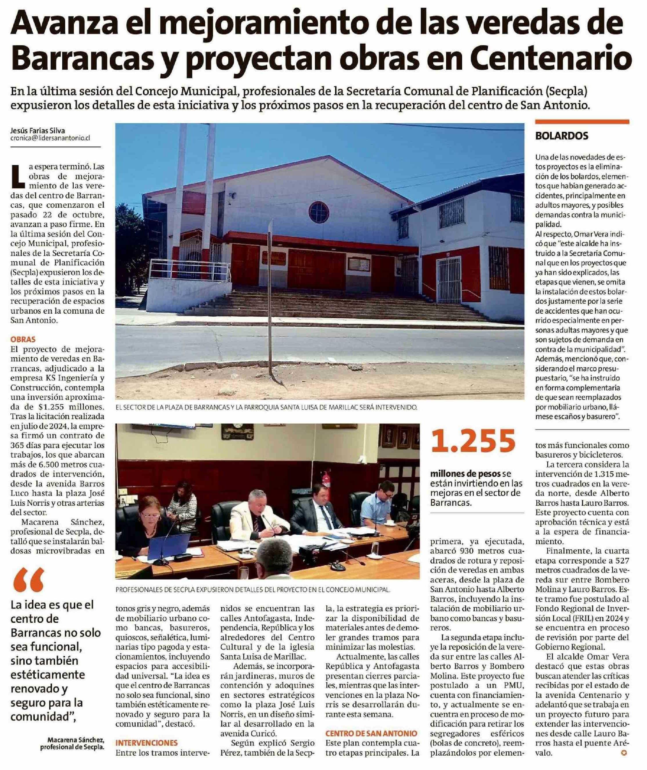 Avanza el mejoramiento de las veredas de Barrancas y proyectan obras en Centenario 28-01-2025 El Líder |