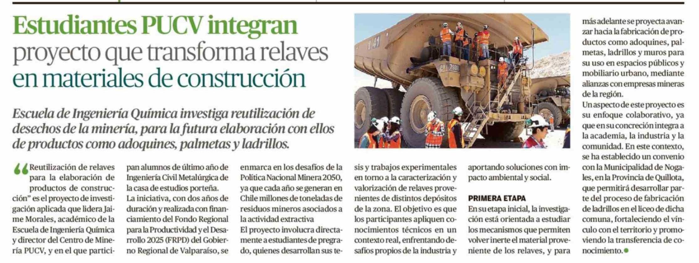 Título: Estudiantes PUCV integran proyecto que transforma relaves en materiales de construcción