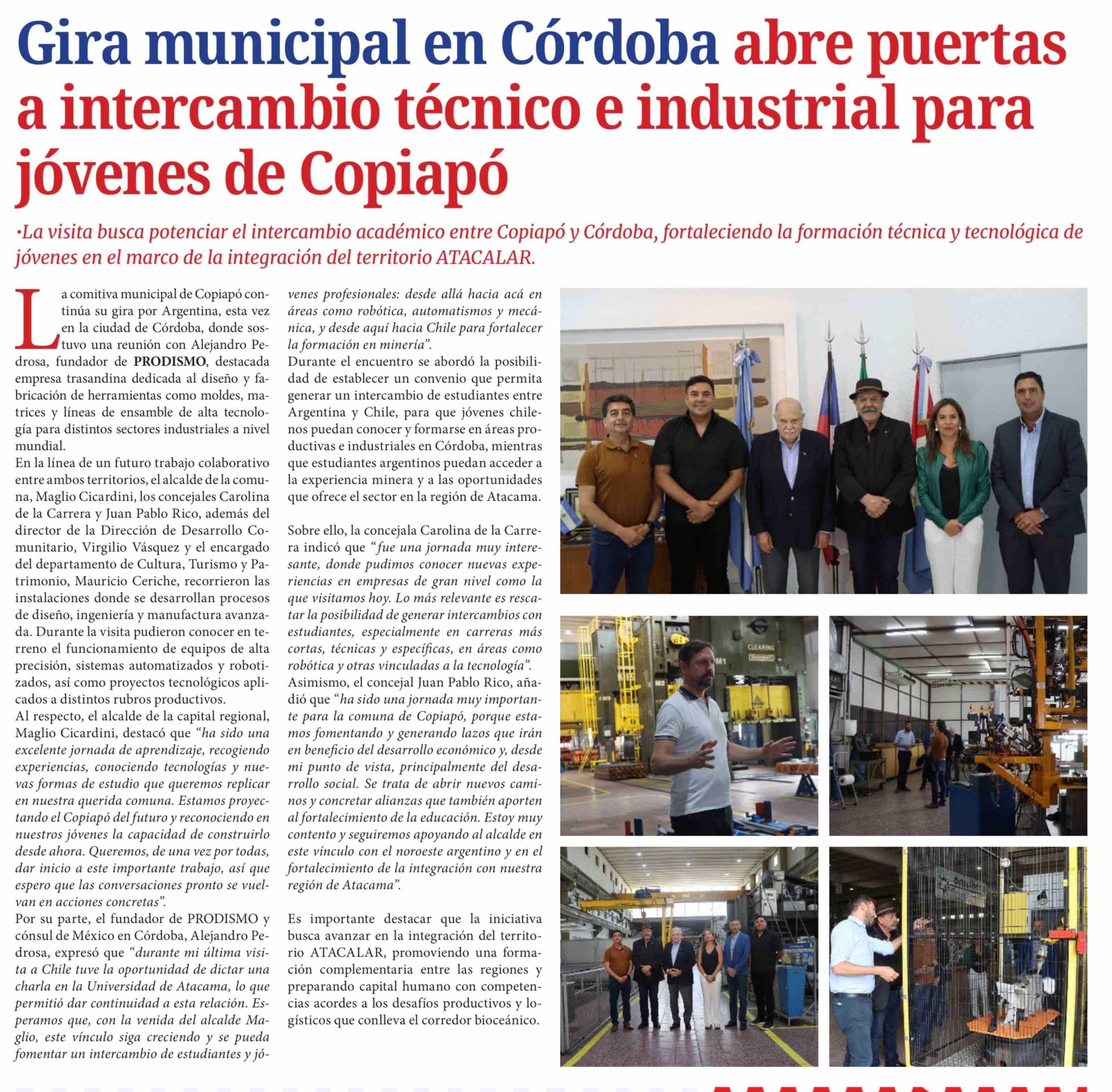 Gira municipal en Córdoba abre puertas a intercambio técnico e industrial para jóvenes de Copiapó 22-02-2026 Diario Chañarcillo |