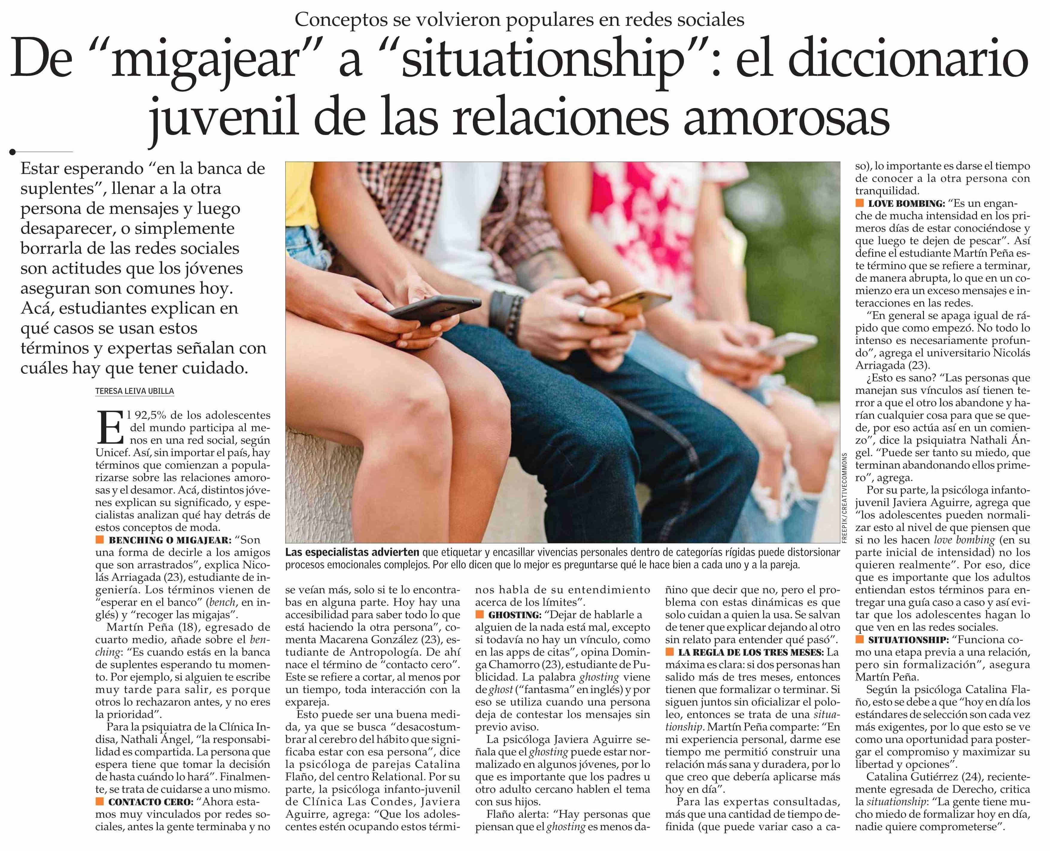 De “migajear” a “situationship”: el diccionario juvenil de las relaciones amorosas 06-02-2026 El Mercurio |