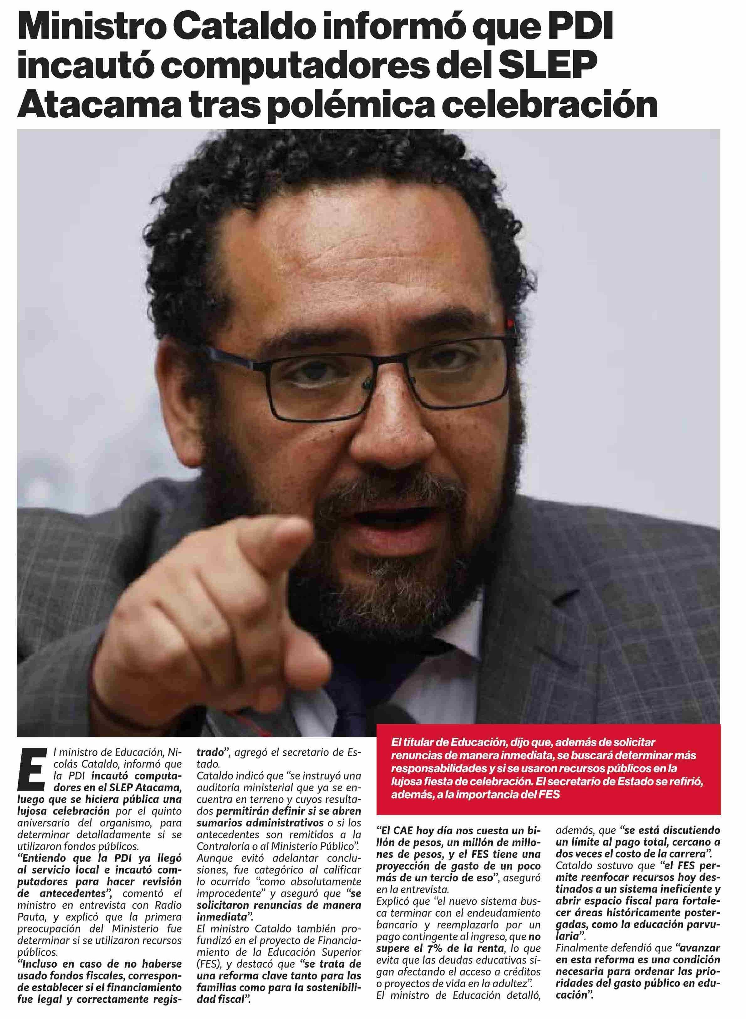 Ministro Cataldo informó que PDI incautó computadores del SLEP Atacama tras polémica celebración 14-01-2026 Puranoticia.cl |