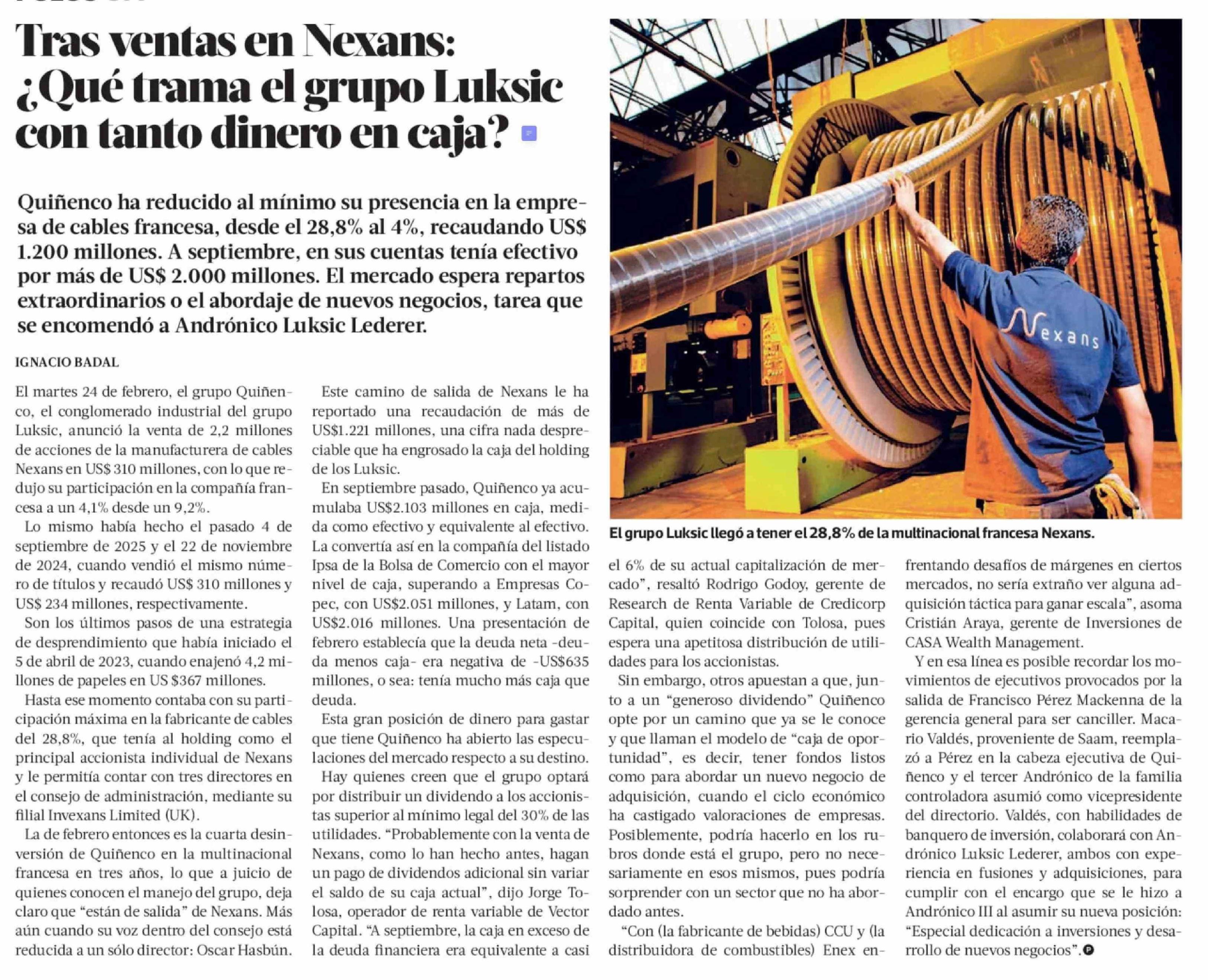 Tras ventas en Nexans: ¿Qué trama el grupo Luksic con tanto dinero en caja? 01-03-2026 La Tercera |