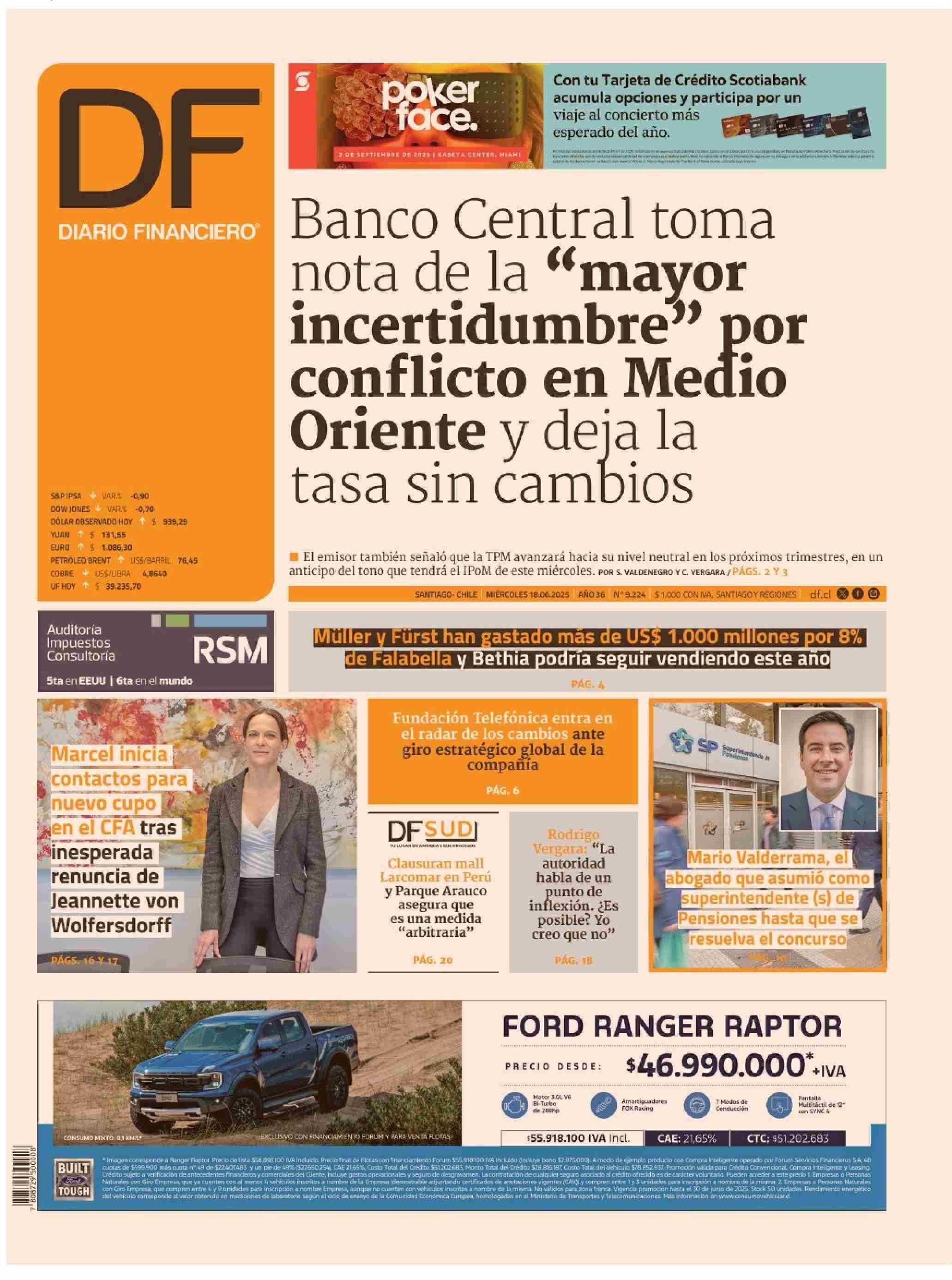 PORTADA DIARIO FINANCIERO - CHILE 18-06-2025 Diario Financiero |
