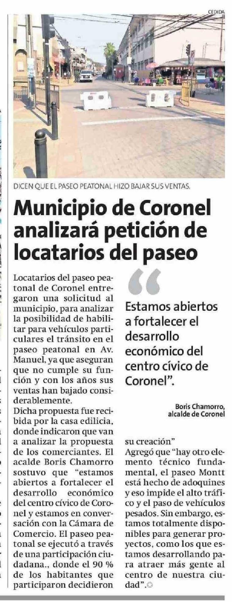 Municipio de Coronel analizará petición de locatarios del paseo 27-03-2025 La Estrella de Concepción |