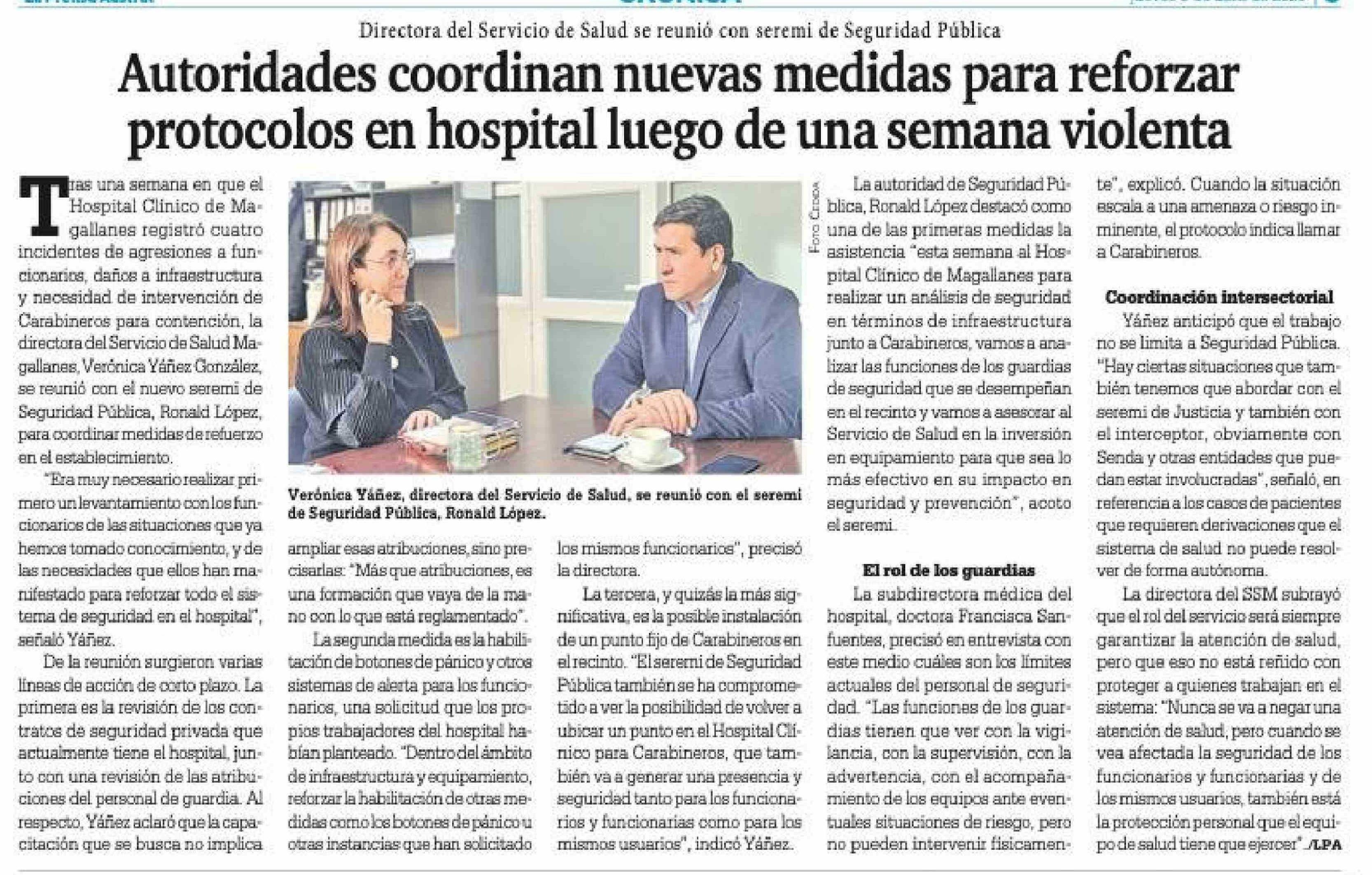 Autoridades coordinan nuevas medidas para reforzar protocolos en hospital luego de una semana violenta 09-04-2026 La Prensa Austral |