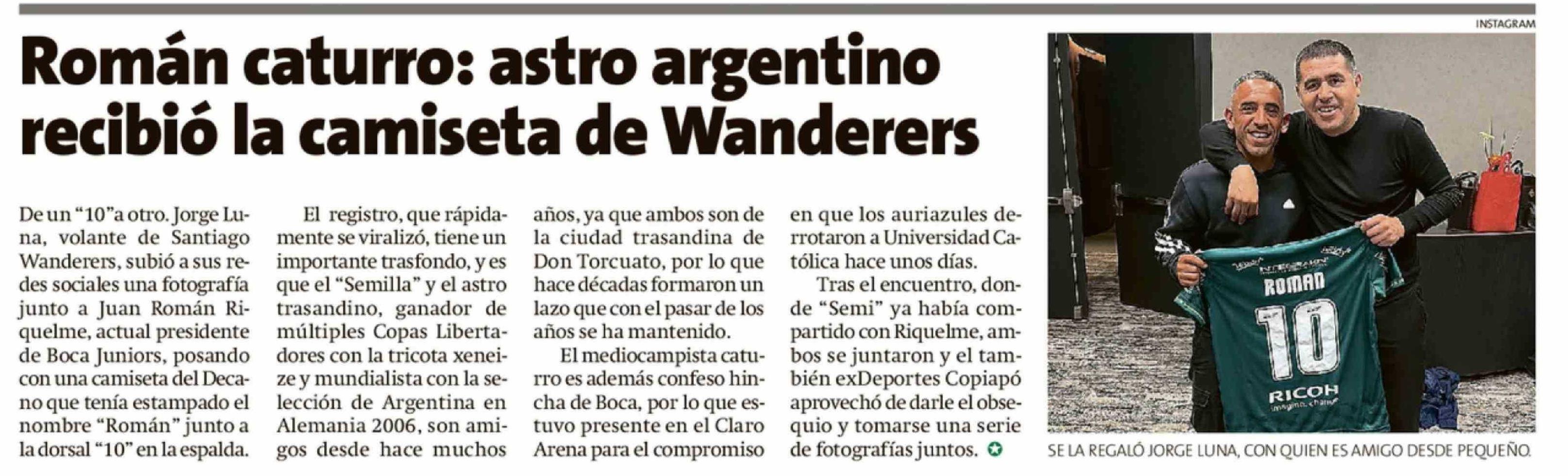 | Título: | Román caturro: astro argentino recibió la camiseta de Wanderers |