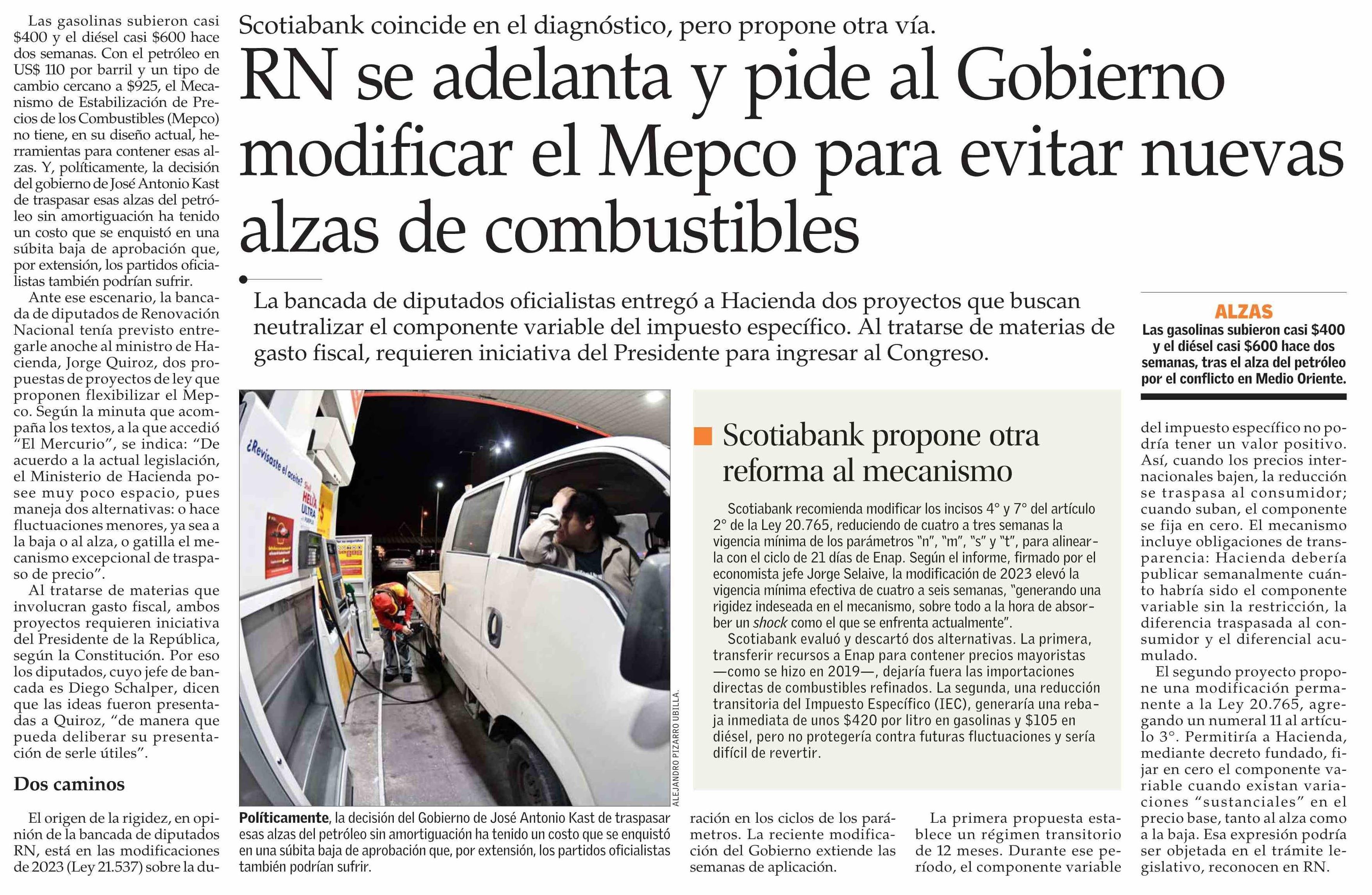 Título: RN se adelanta y pide al Gobierno modificar el Mepco para evitar nuevas alzas de combustibles