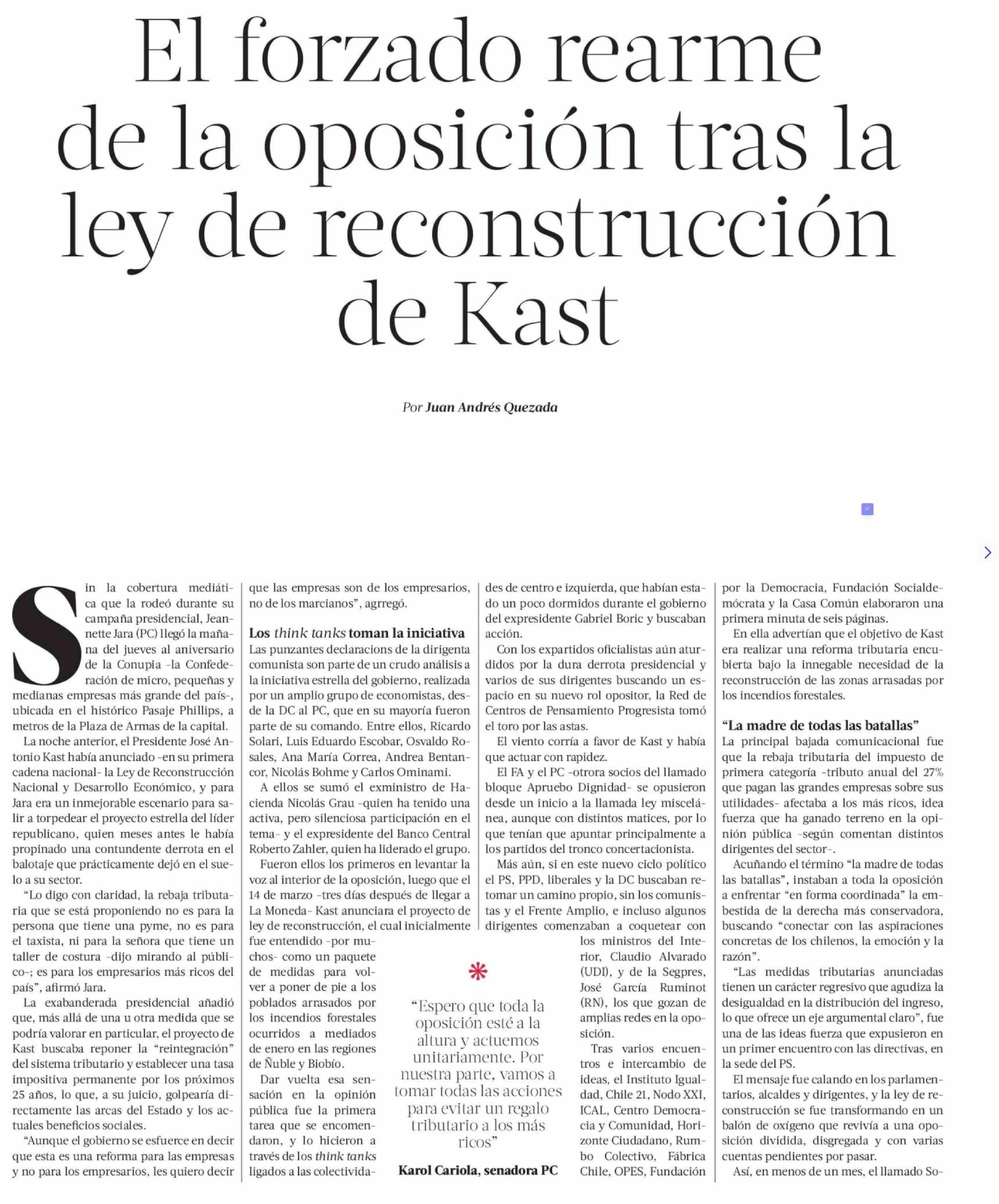 | Título: | El forzado rearme de la oposición tras la ley de reconstrucción de Kast |