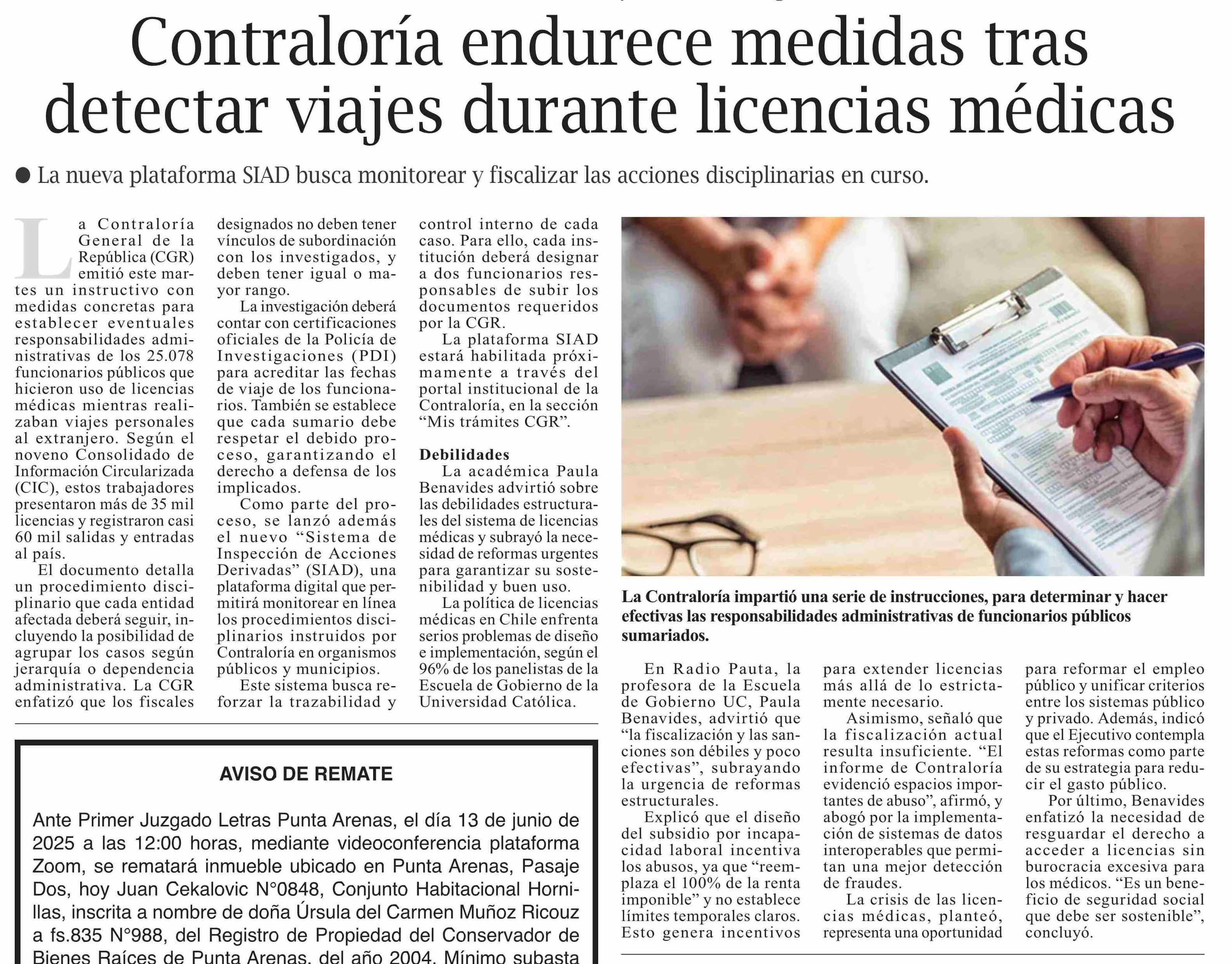 Título: Contraloría endurece medidas tras detectar viajes durante licencias médicas