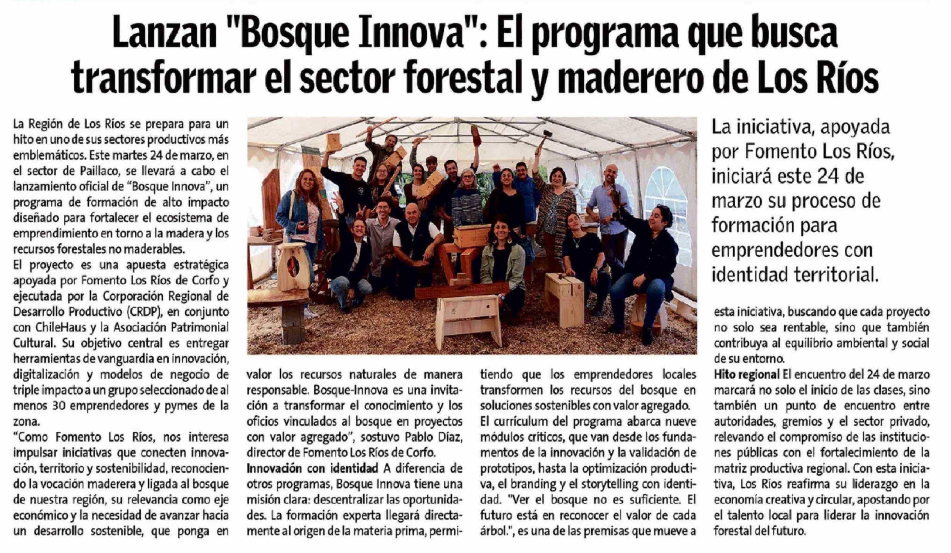 Título: Lanzan "Bosque Innova": El programa que busca transformar el sector forestal y maderero de Los Ríos