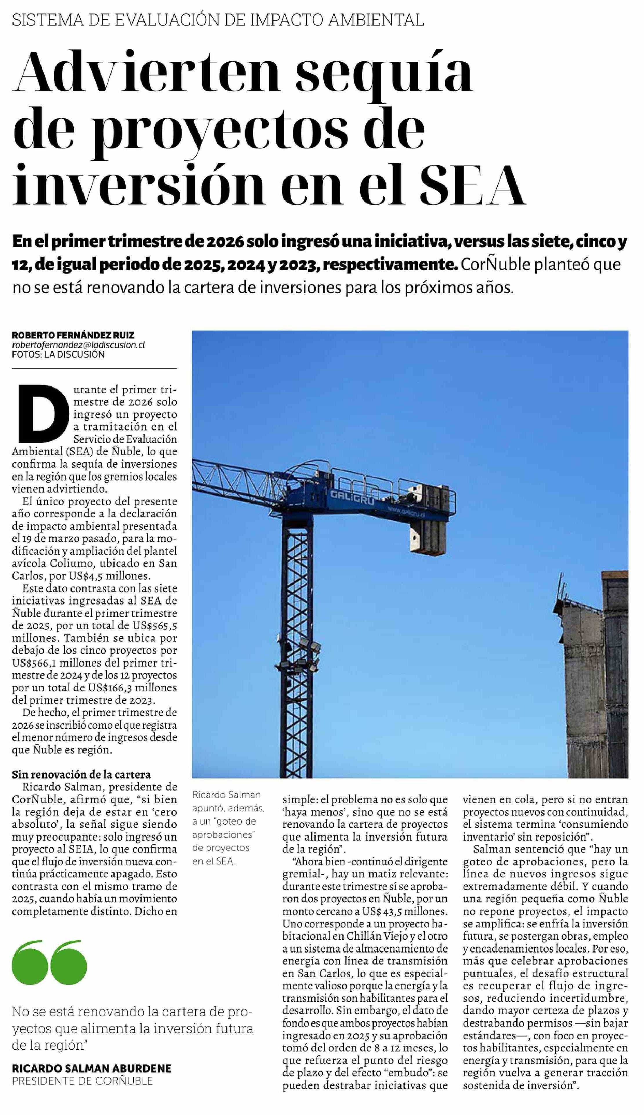 Título: Advierten sequía de proyectos de inversión en el SEA