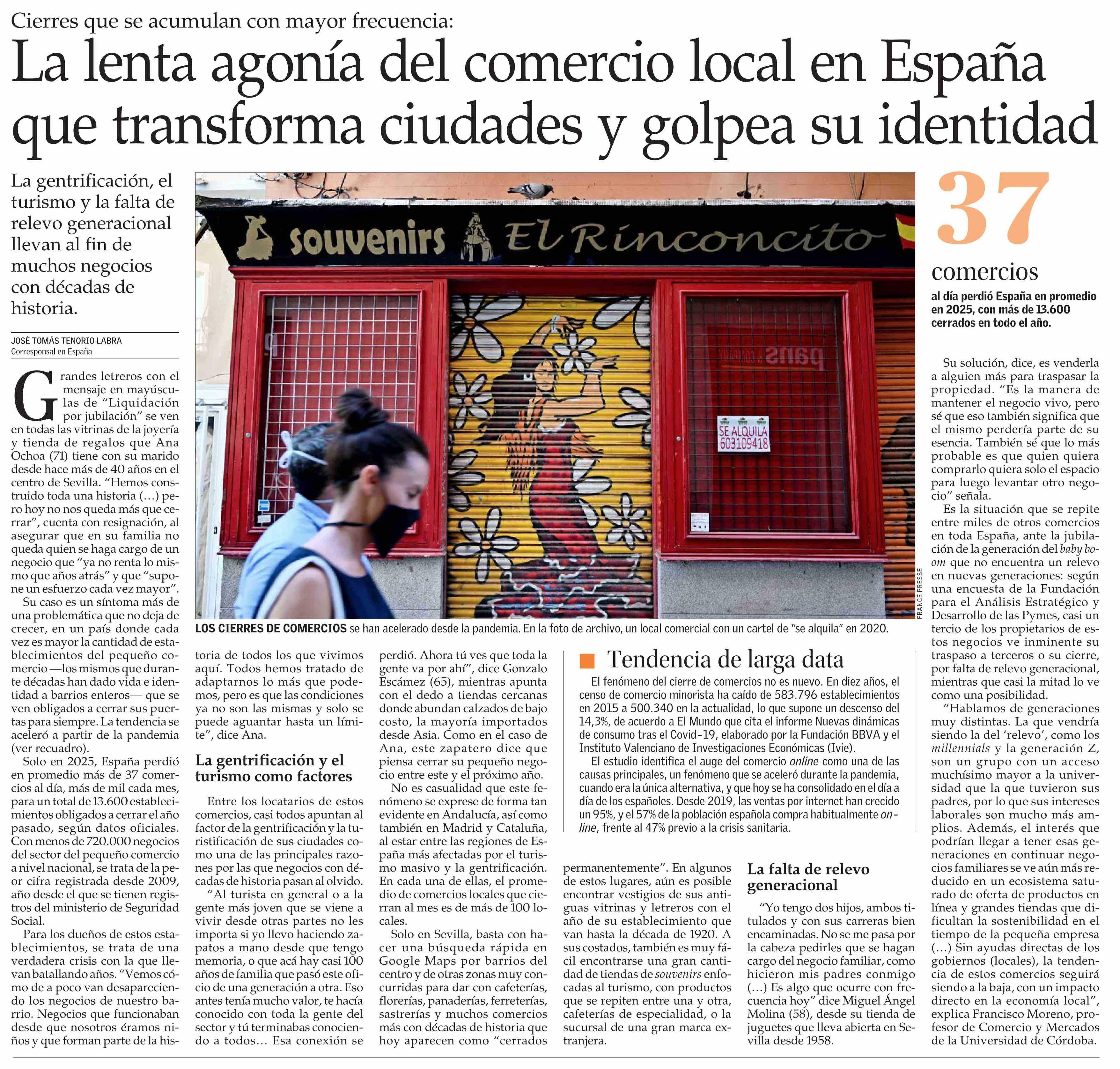 La lenta agonía del comercio local en España que transforma ciudades y golpea su identidad 26-04-2026 El Mercurio |