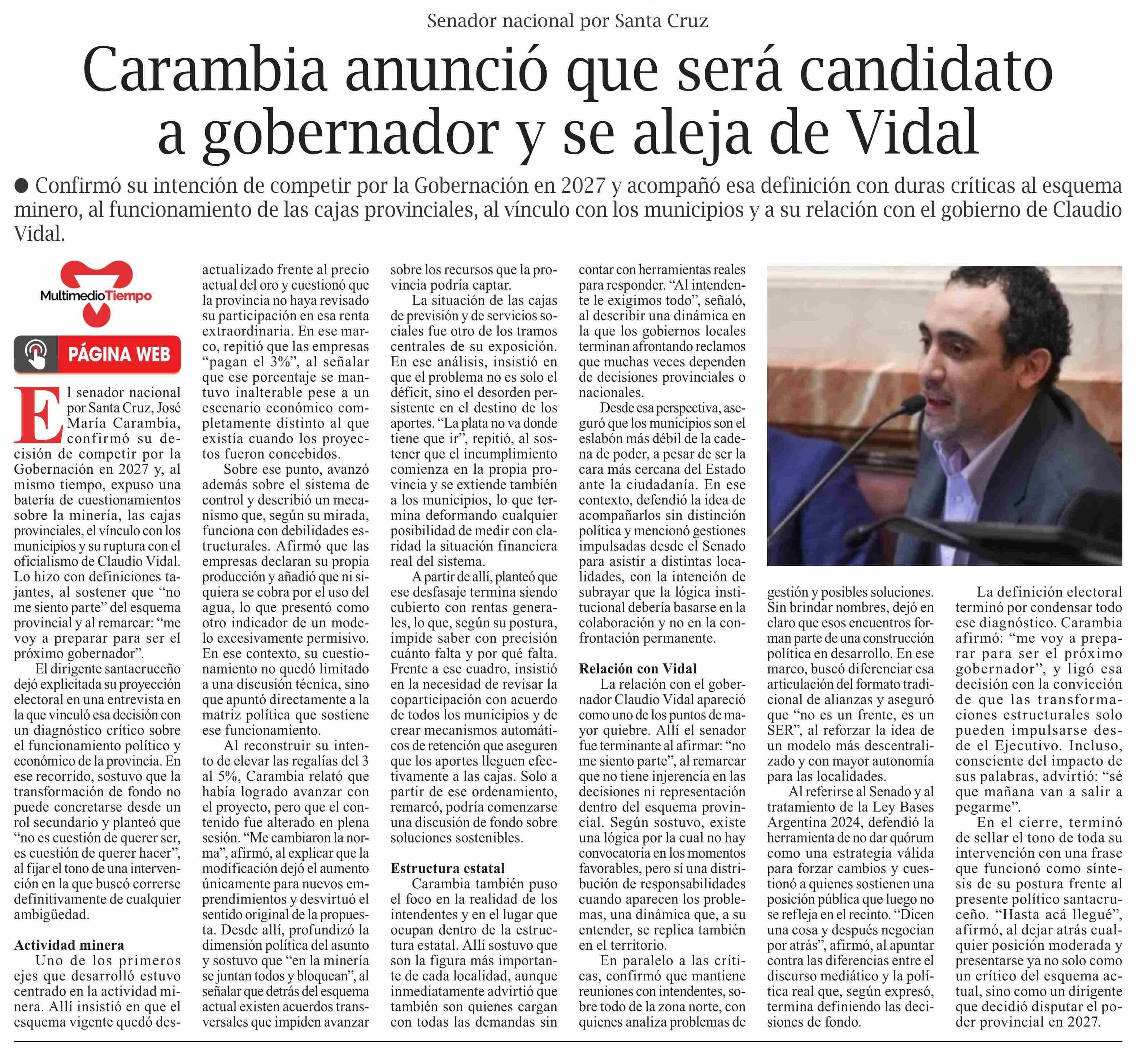 | Título: | Carambia anunció que será candidato a gobernador y se aleja de Vidal |