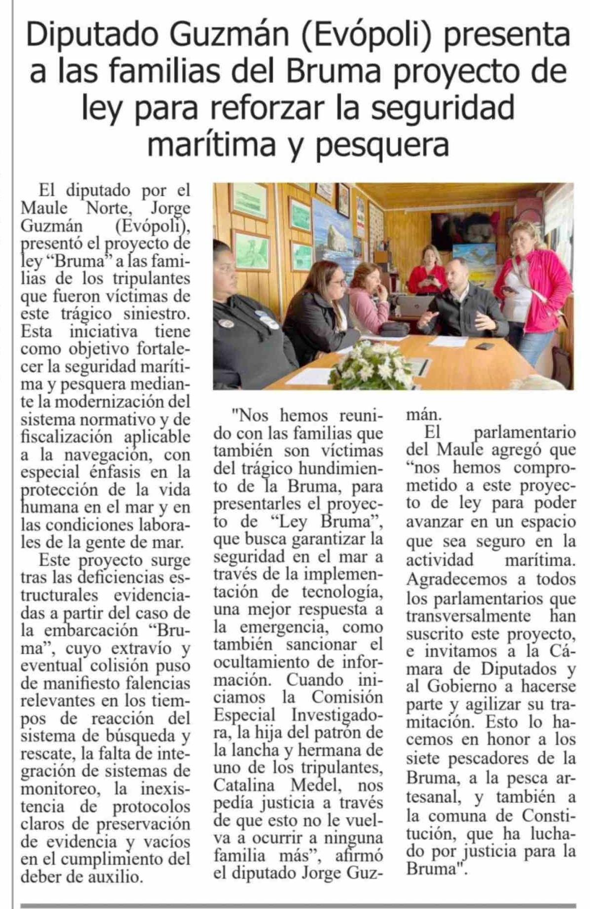 Título: Diputado Guzmán (Evópoli) presenta a las familias del Bruma proyecto de ley para reforzar la seguridad marítima y pesquera