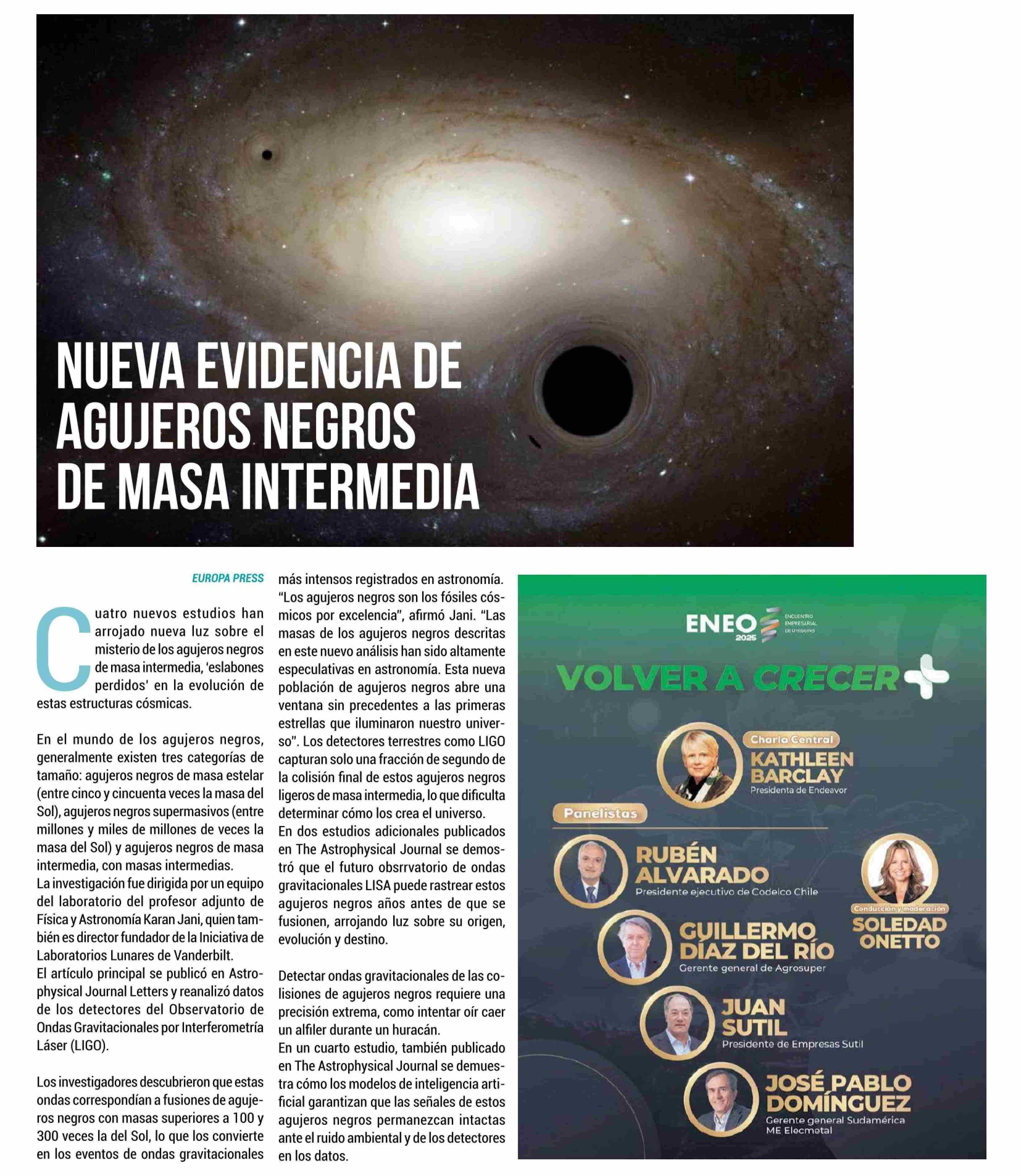 NUEVA EVIDENCIA DE AGUJEROS NEGROS DE MASA INTERMEDIA 01-06-2025 El Rancagüino |
