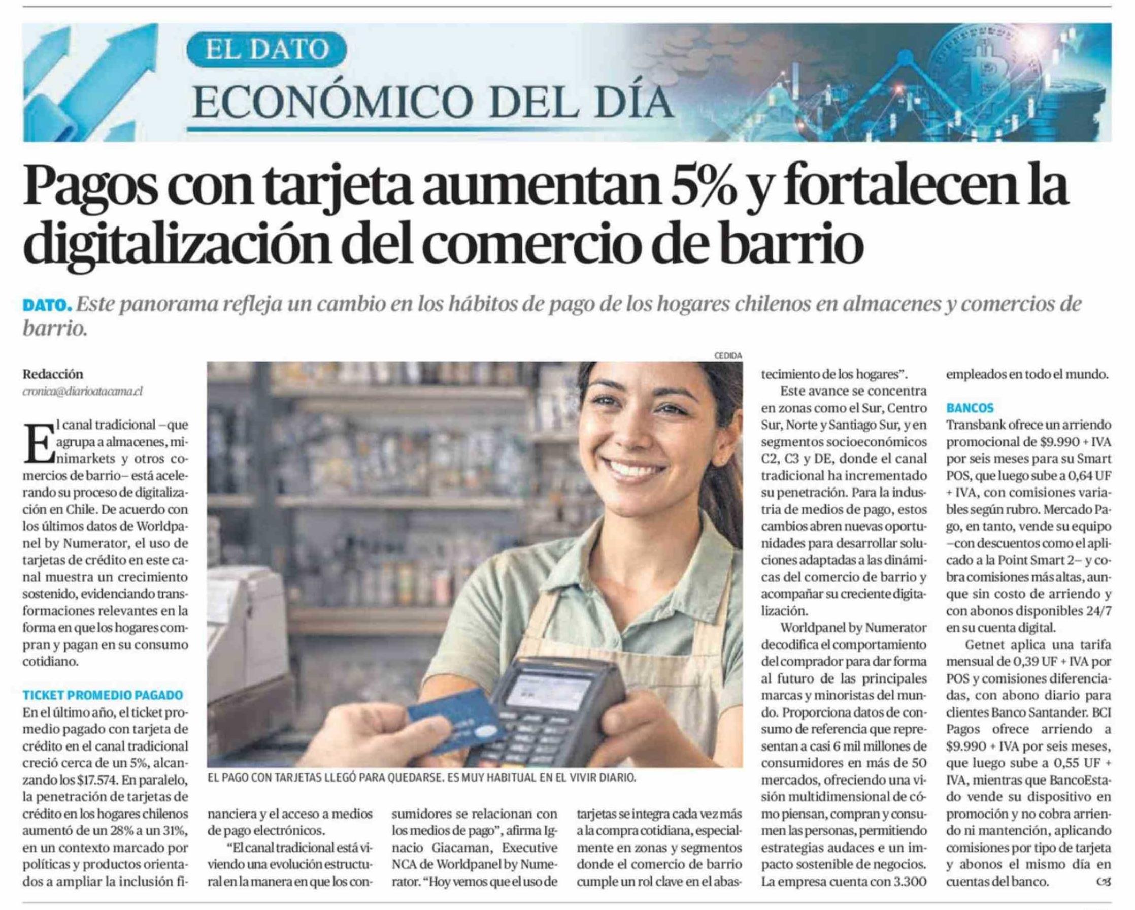 Pagos con tarjeta aumentan 5% y fortalecen la digitalización del comercio de barrio 15-02-2026 El Diario de Atacama |
