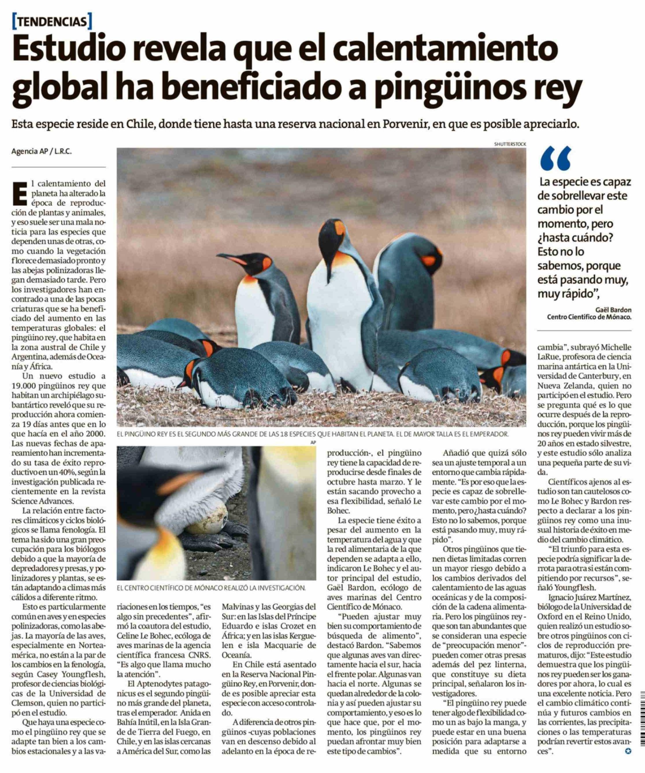 Título: Estudio revela que el calentamiento global ha beneficiado a pingüinos rey