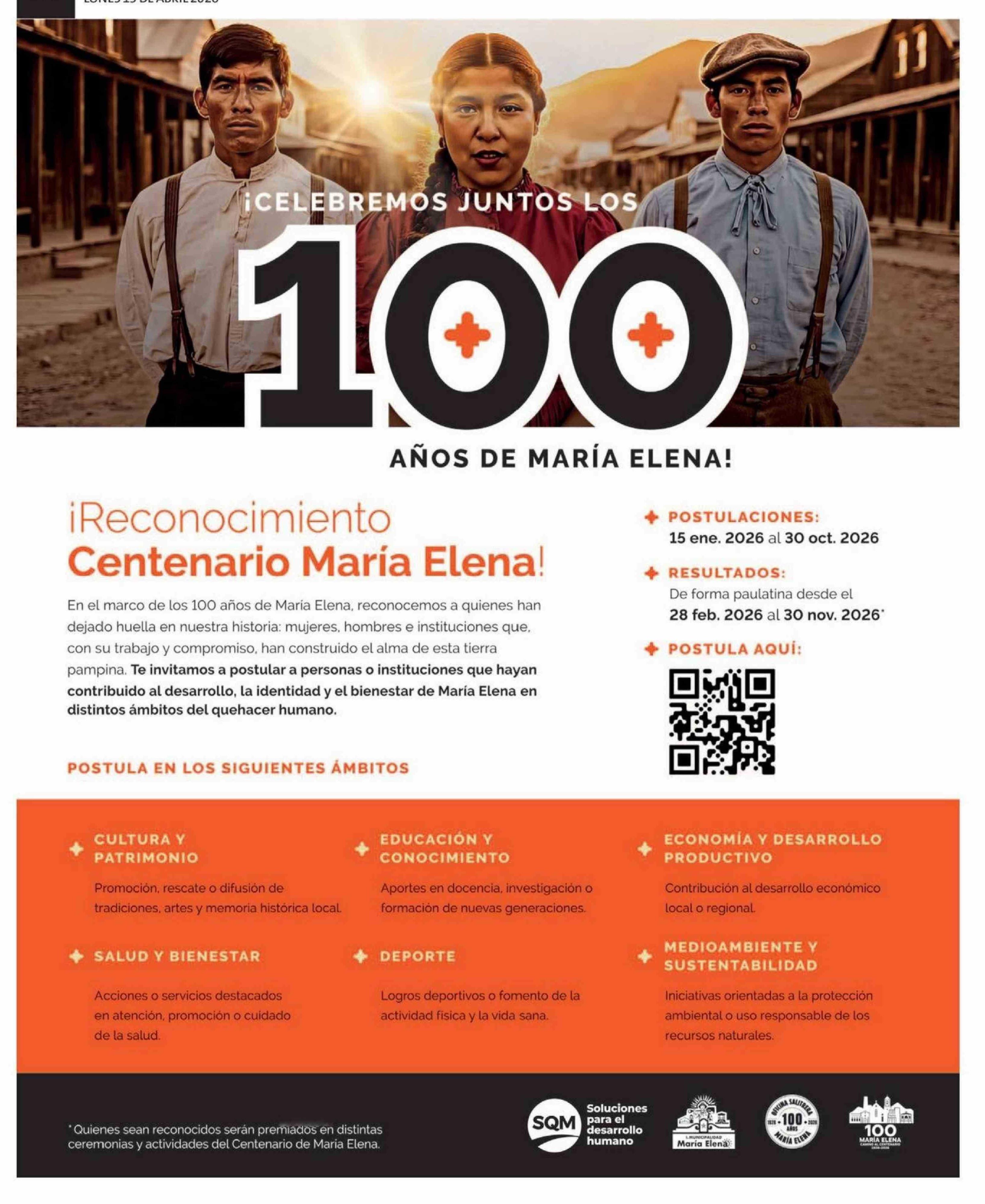 ¡CELEBREMOS JUNTOS LOS 100 AÑOS DE MARÍA ELENA! 13-04-2026 La Estrella de Antofagasta |