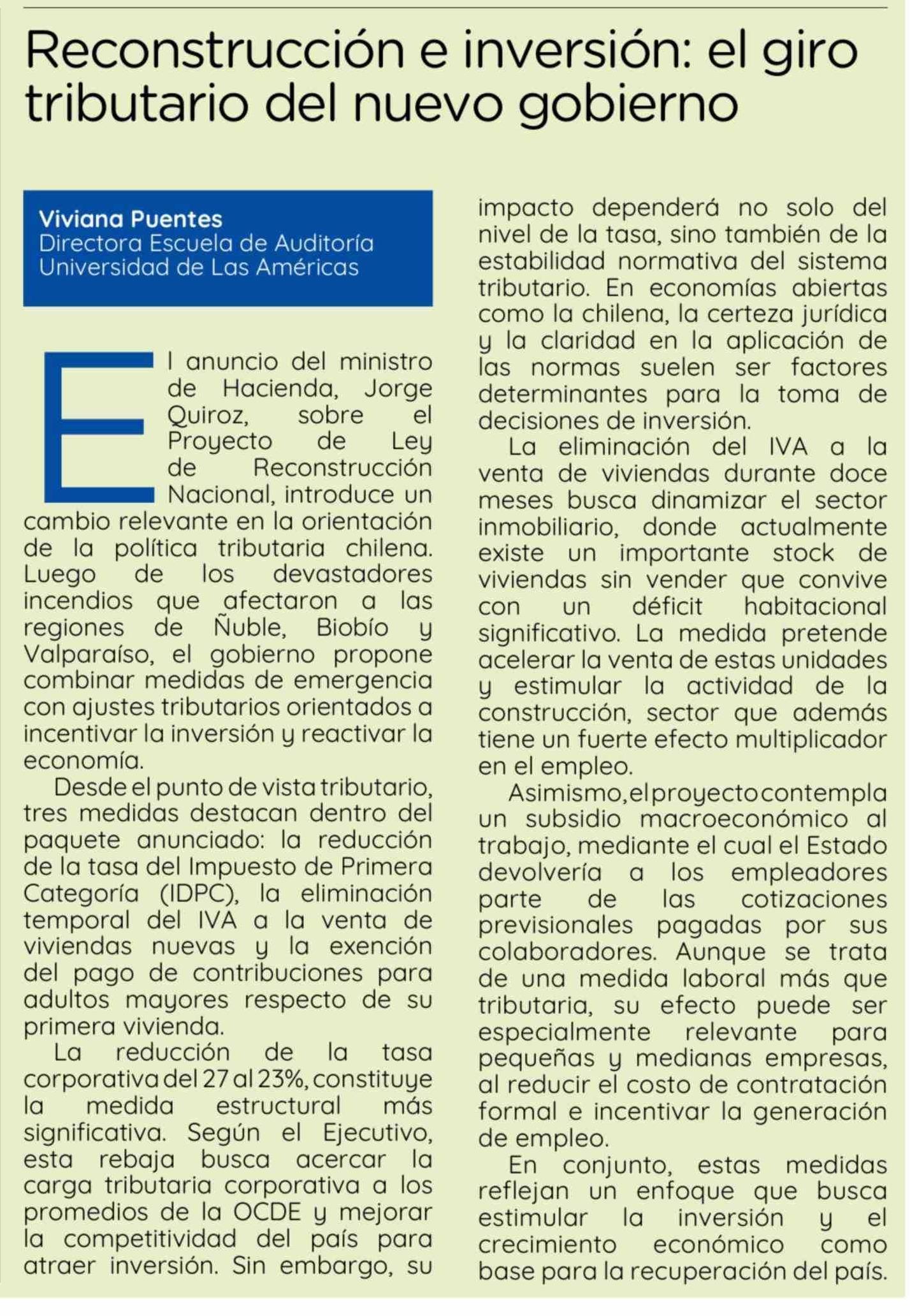 Título: Columnas de Opinión: Reconstrucción e inversión: el giro tributario del nuevo gobierno