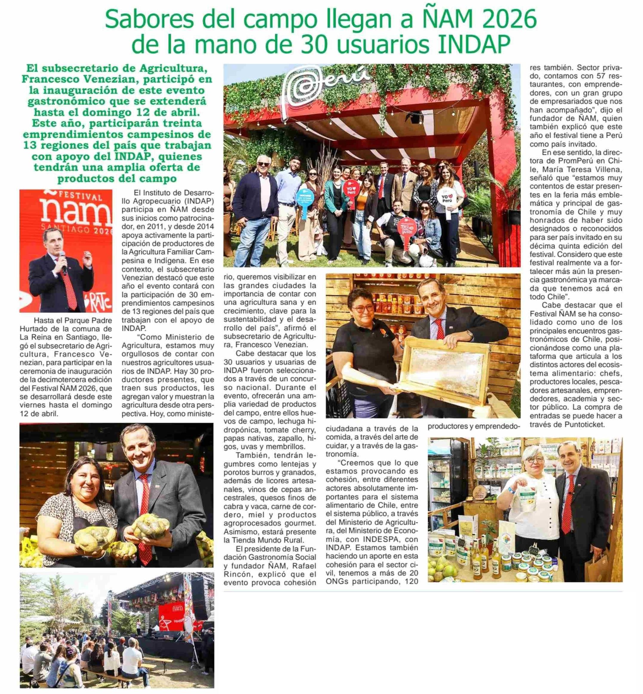 | Título: | Sabores del campo llegan a ÑAM 2026 de la mano de 30 usuarios INDAP |