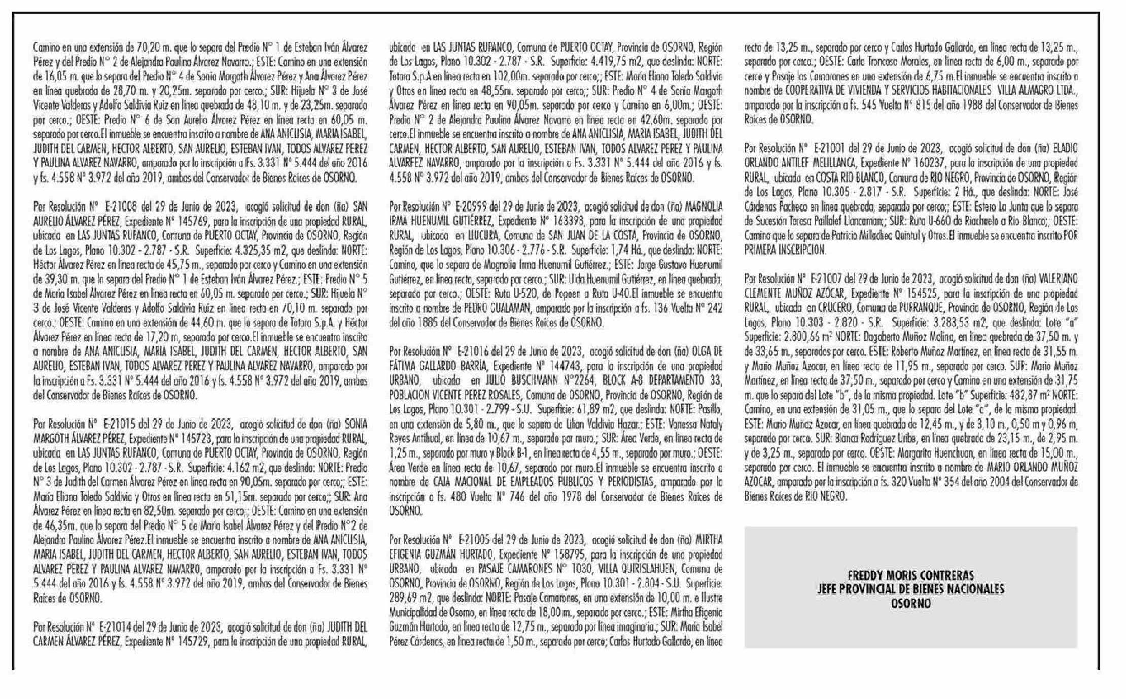 REGULARIZACION DE POSESION DE LA PEQUEÑA PROPIEDAD RAIZ Y CONSTITUCION DEL DOMINIO SOBRE ELLA 01-07-2023 El Austral de Osorno |