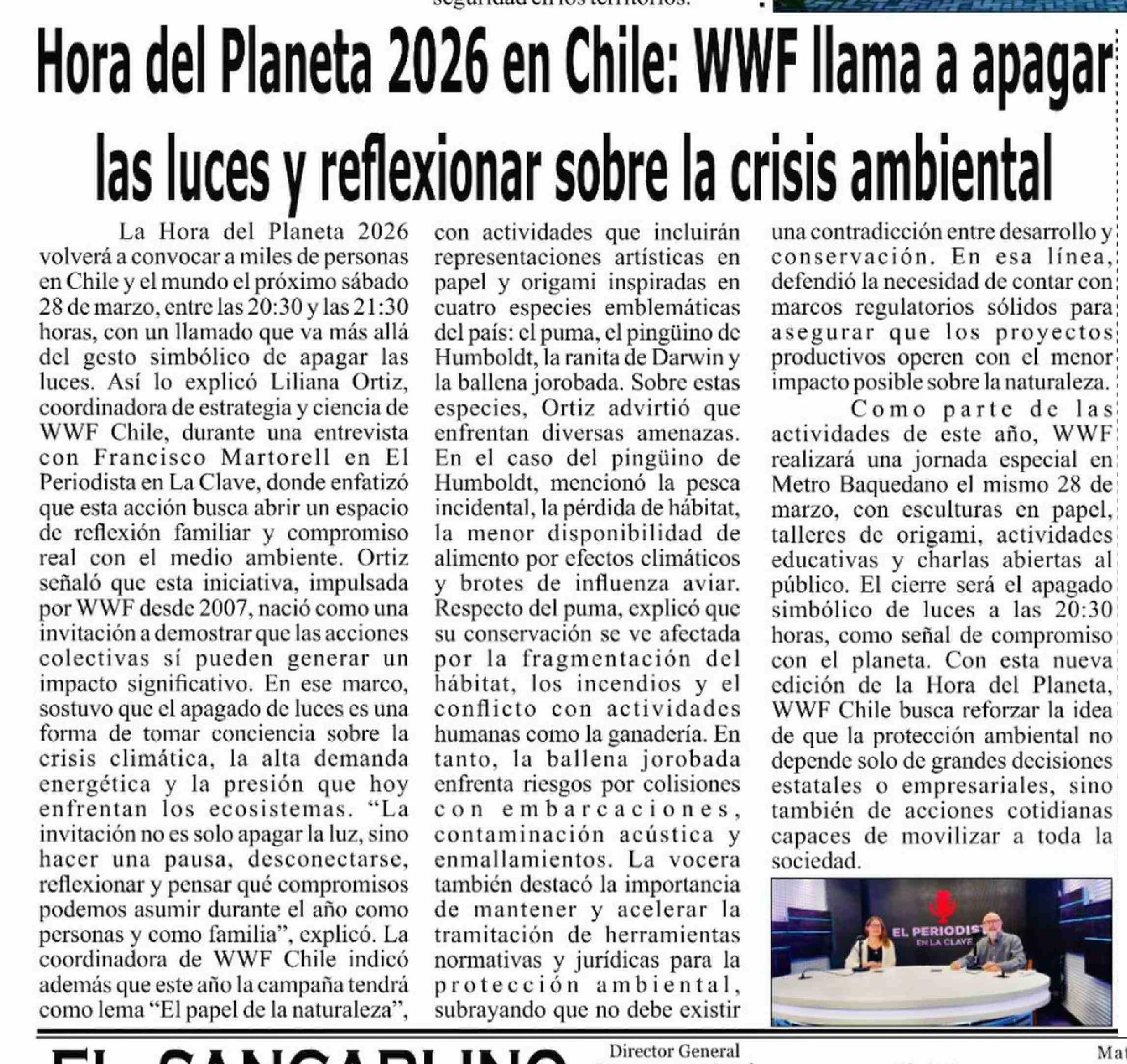 Título: Hora del Planeta 2026 en Chile: WWF llama a apagar las luces y reflexionar sobre la crisis ambiental