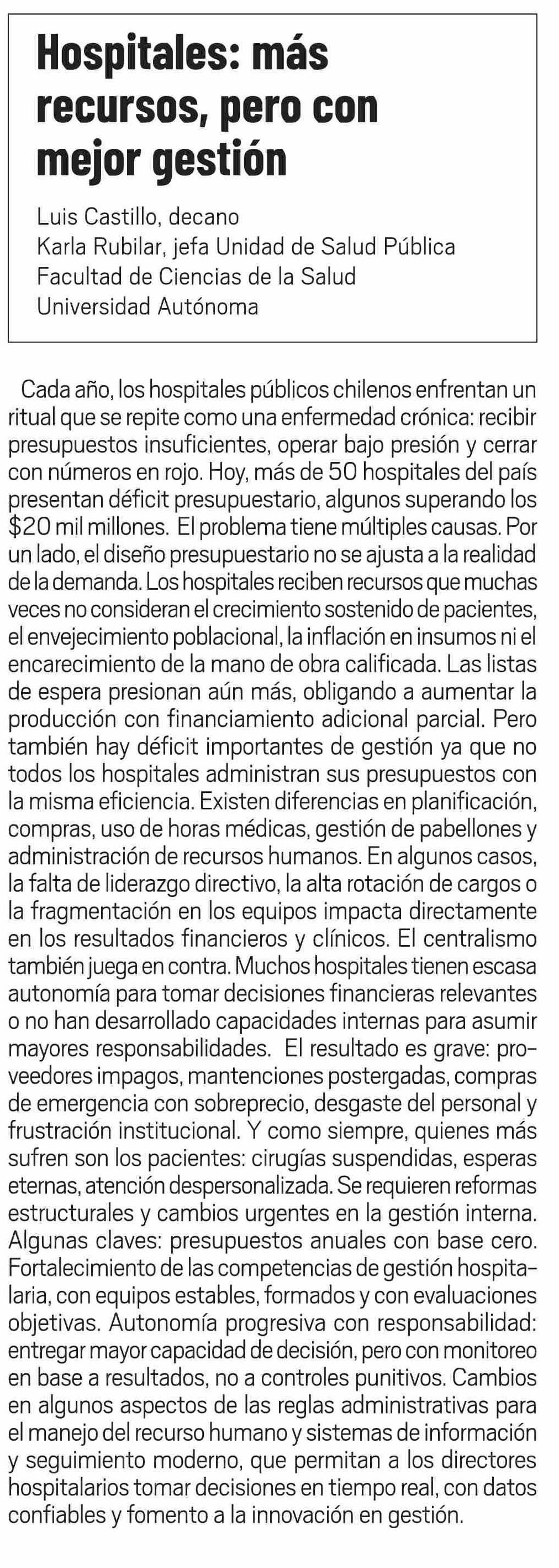 COLUMNAS DE OPINIÓN: Hospitales: más recursos, pero con mejor gestión 23-05-2025 El Día |