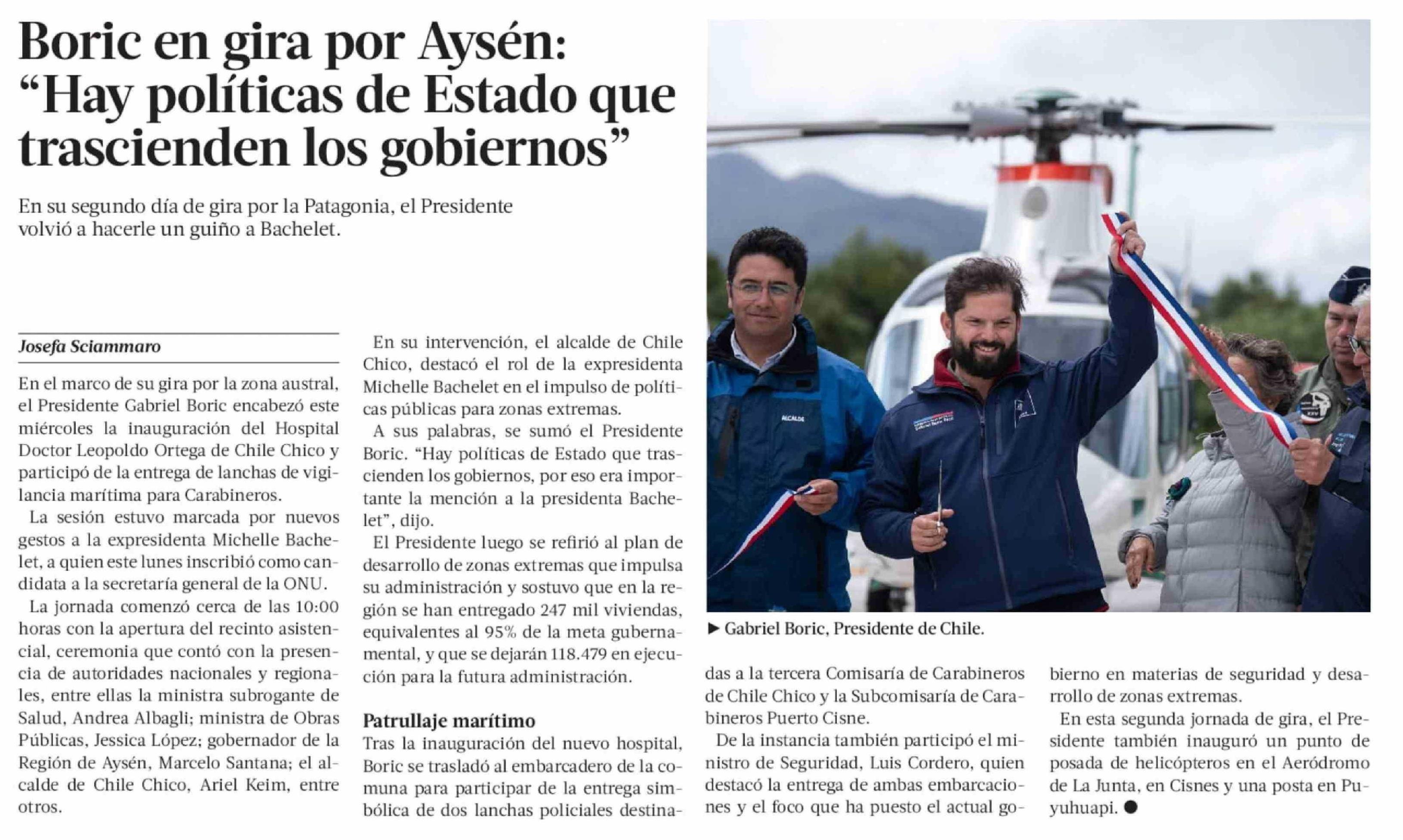 | Título: | Boric en gira por Aysén: "Hay políticas de Estado que trascienden los gobiernos" |