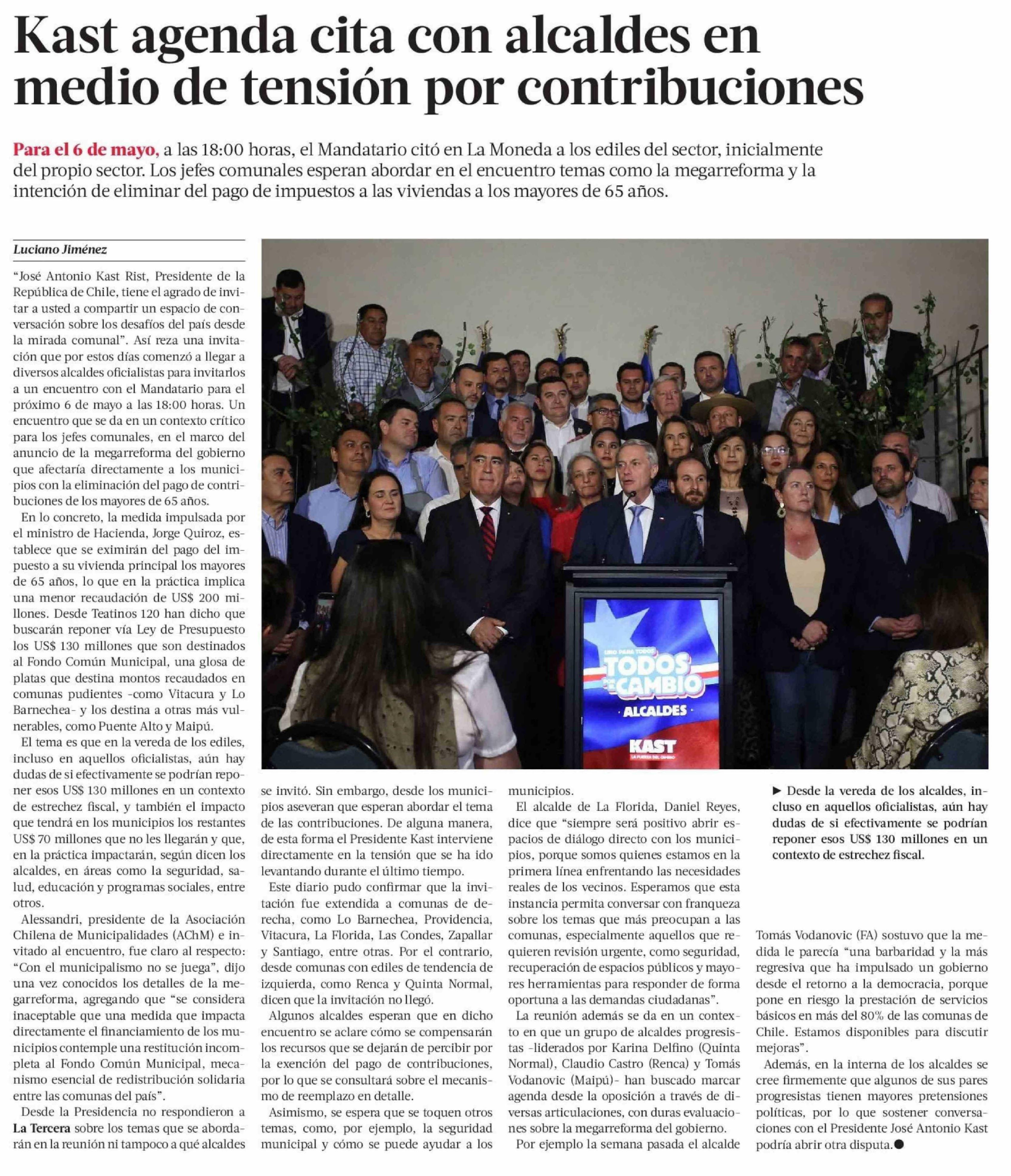 Título: Kast agenda cita con alcaldes en medio de tensión por contribuciones