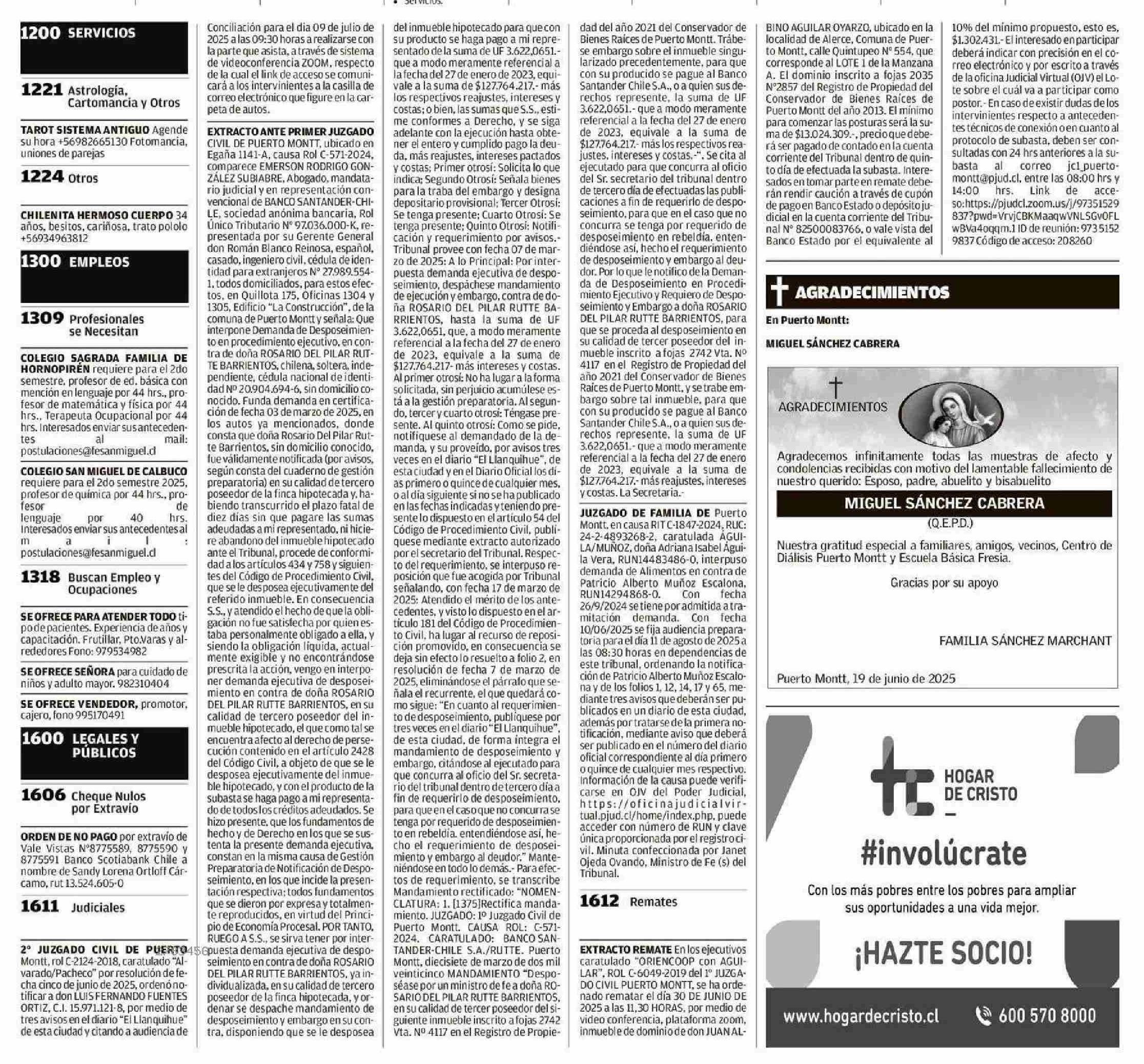 Extractos: CLASIFICADOS 19-06-2025 El Llanquihue |
