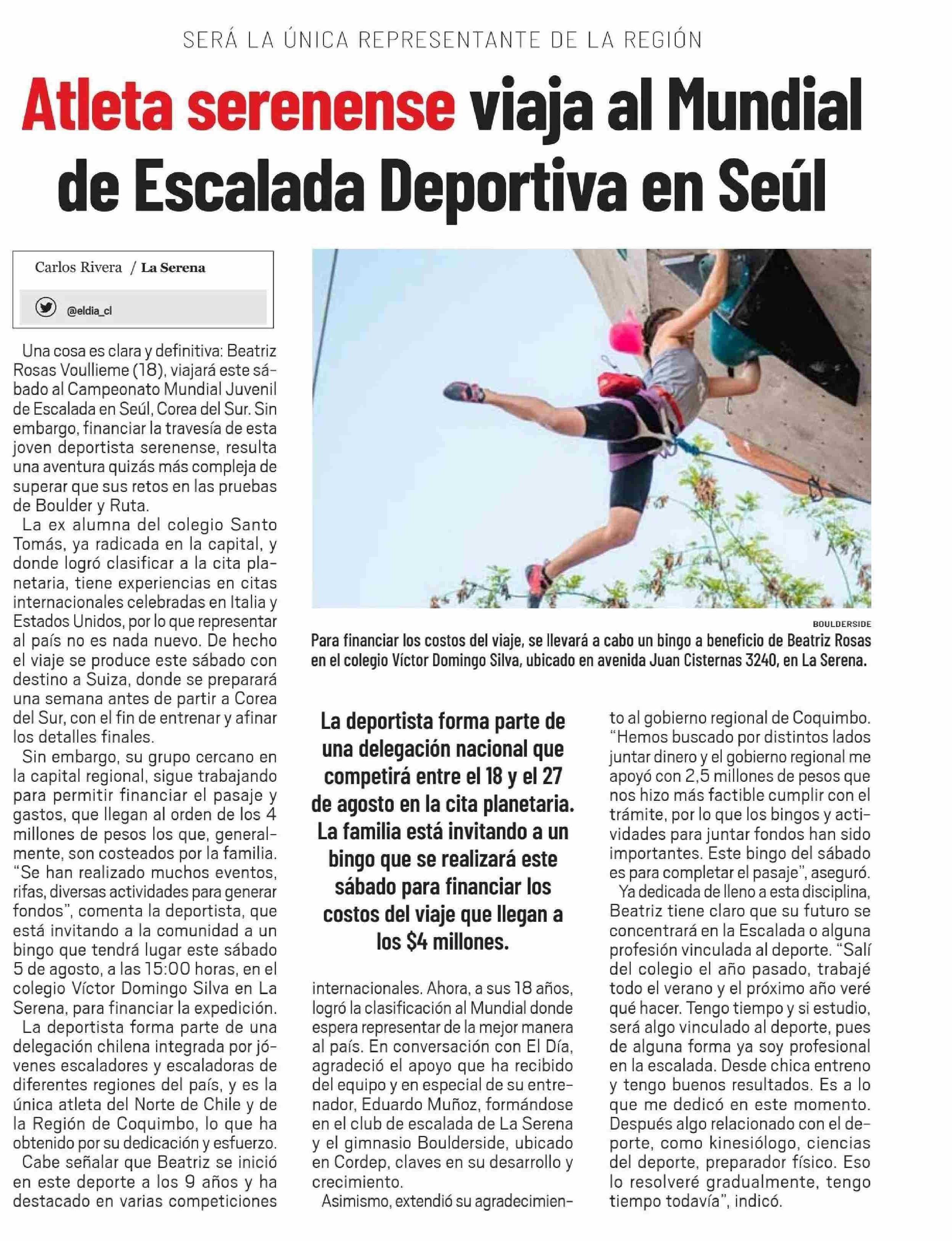 Atleta serenense viaja al Mundial de Escalada Deportiva en Seúl 03-08-2023 El Día |