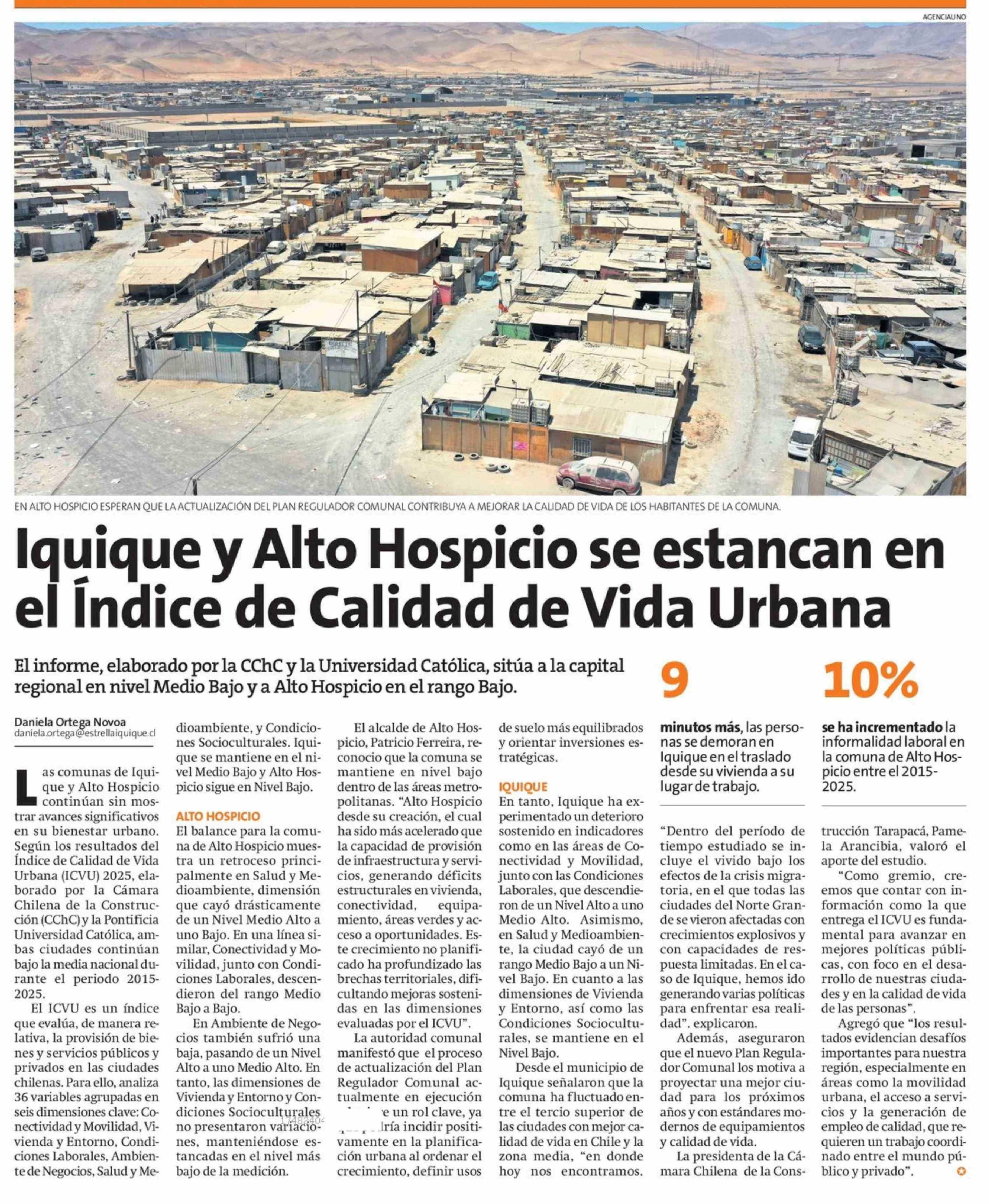 Título: Iquique y Alto Hospicio se estancan en el Índice de Calidad de Vida Urbana