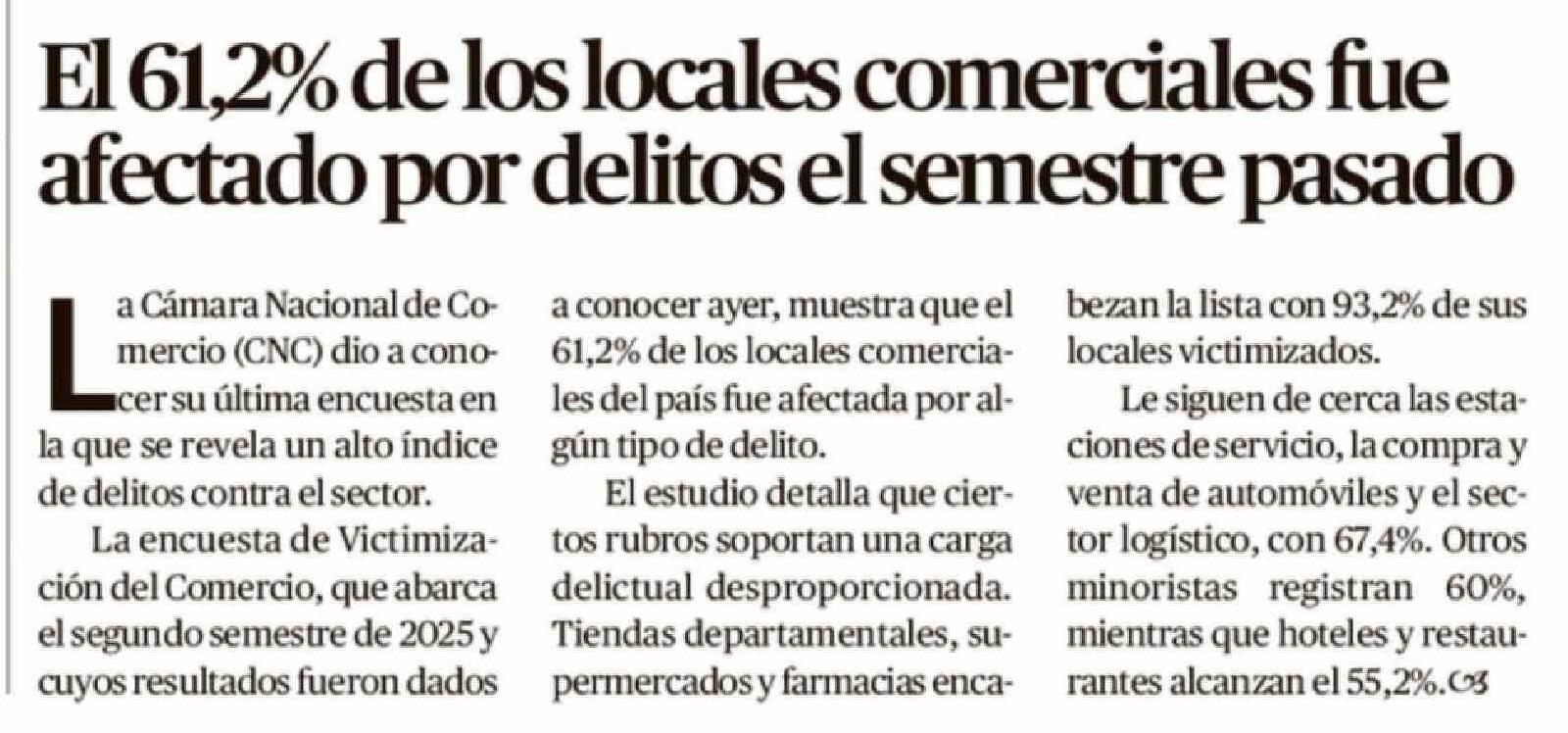 Título: El 61,2% de los locales comerciales fue afectado por delitos el semestre pasado