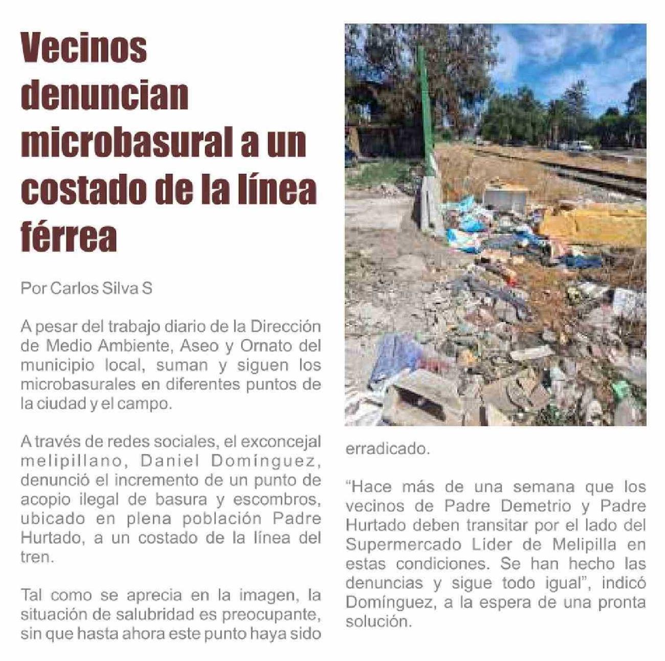 | Título: | Vecinos denuncian microbasural a un costado de la línea férrea |