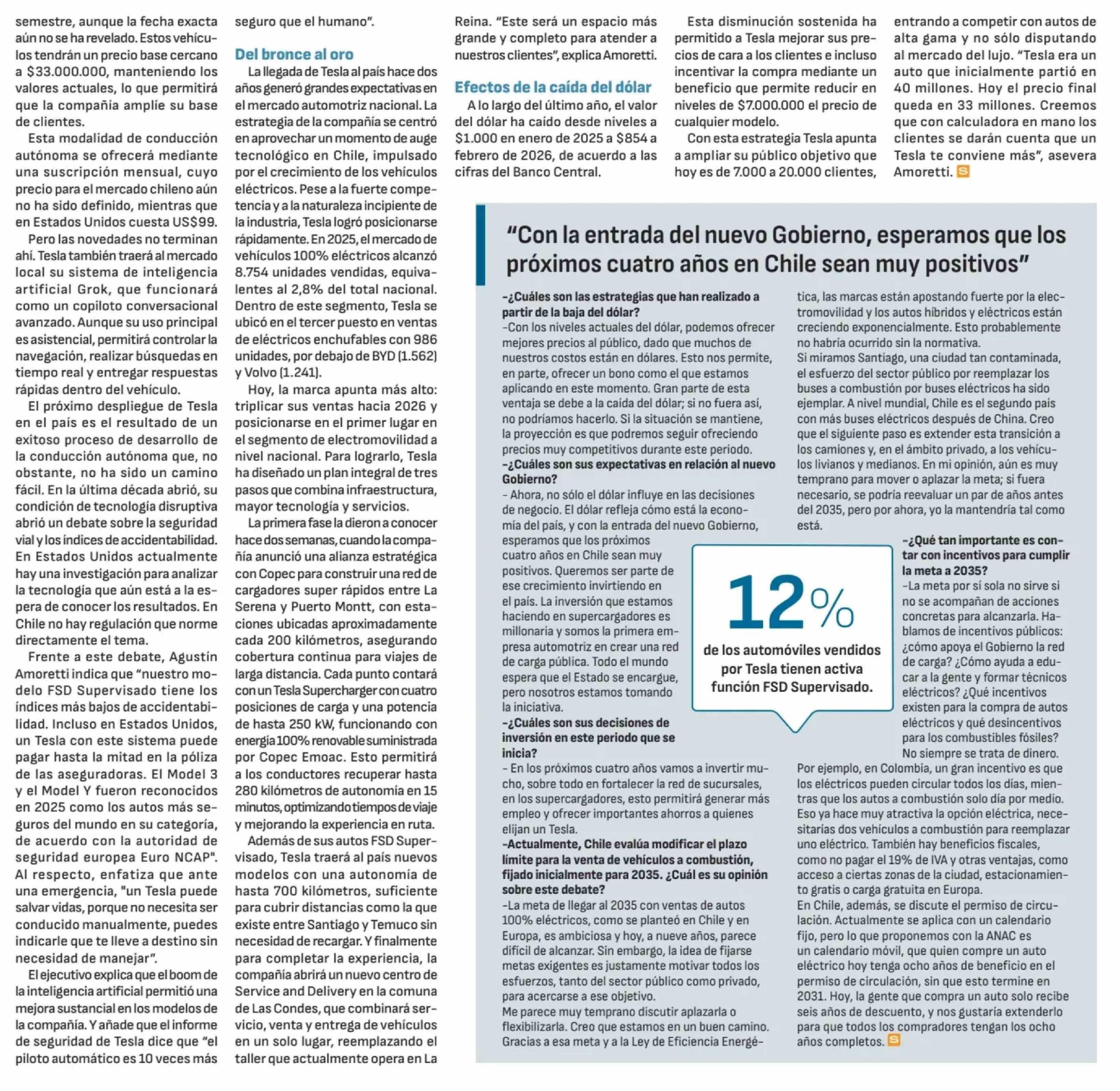Título: La arremetida de Tesla en Chile: iniciará oferta de autos autónomos en primer semestre y apunta a triplicar ventas en 2026