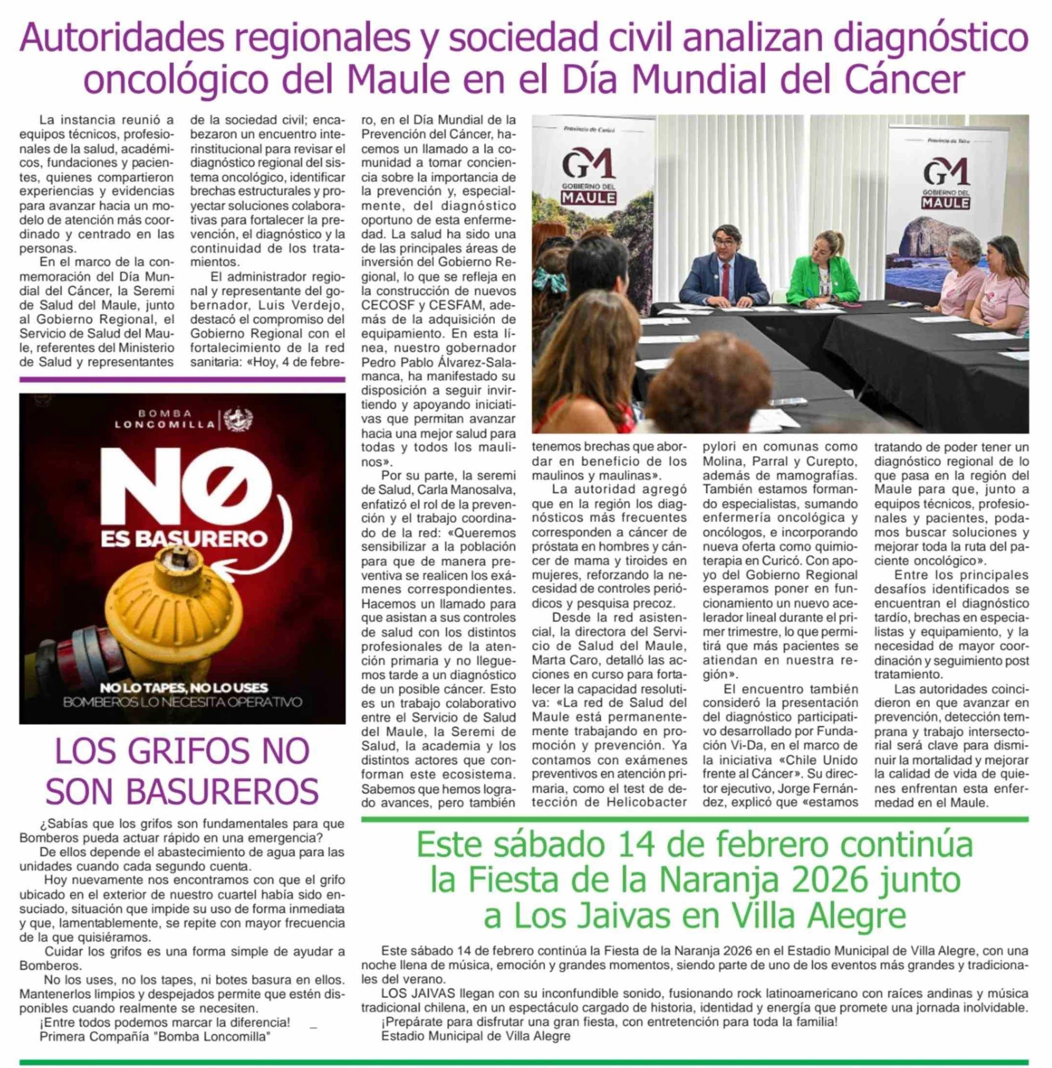 Autoridades regionales y sociedad civil analizan diagnóstico oncológico del Maule en el Día Mundial del Cáncer 06-02-2026 Maule Hoy |