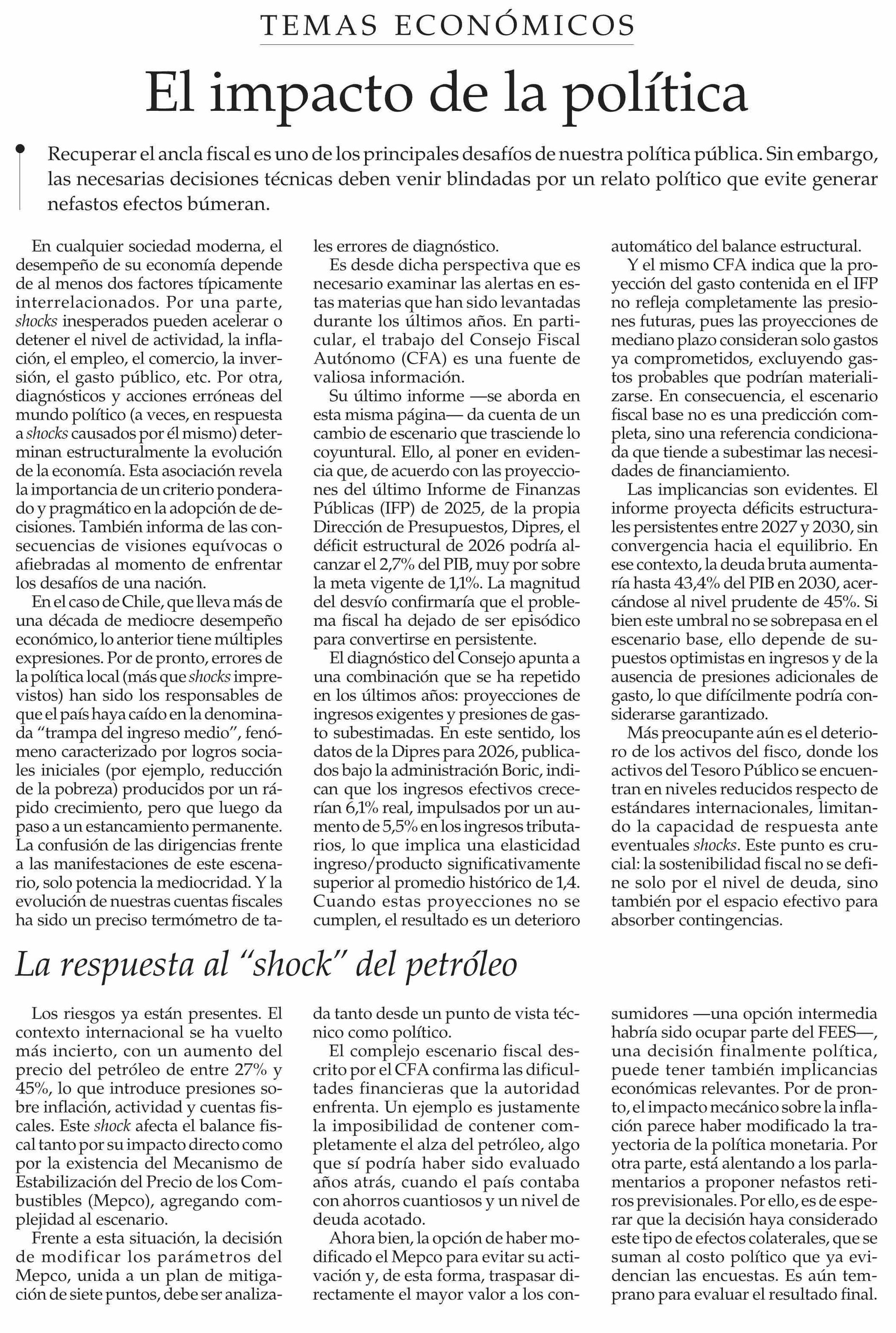 Editorial: El impacto de la política
