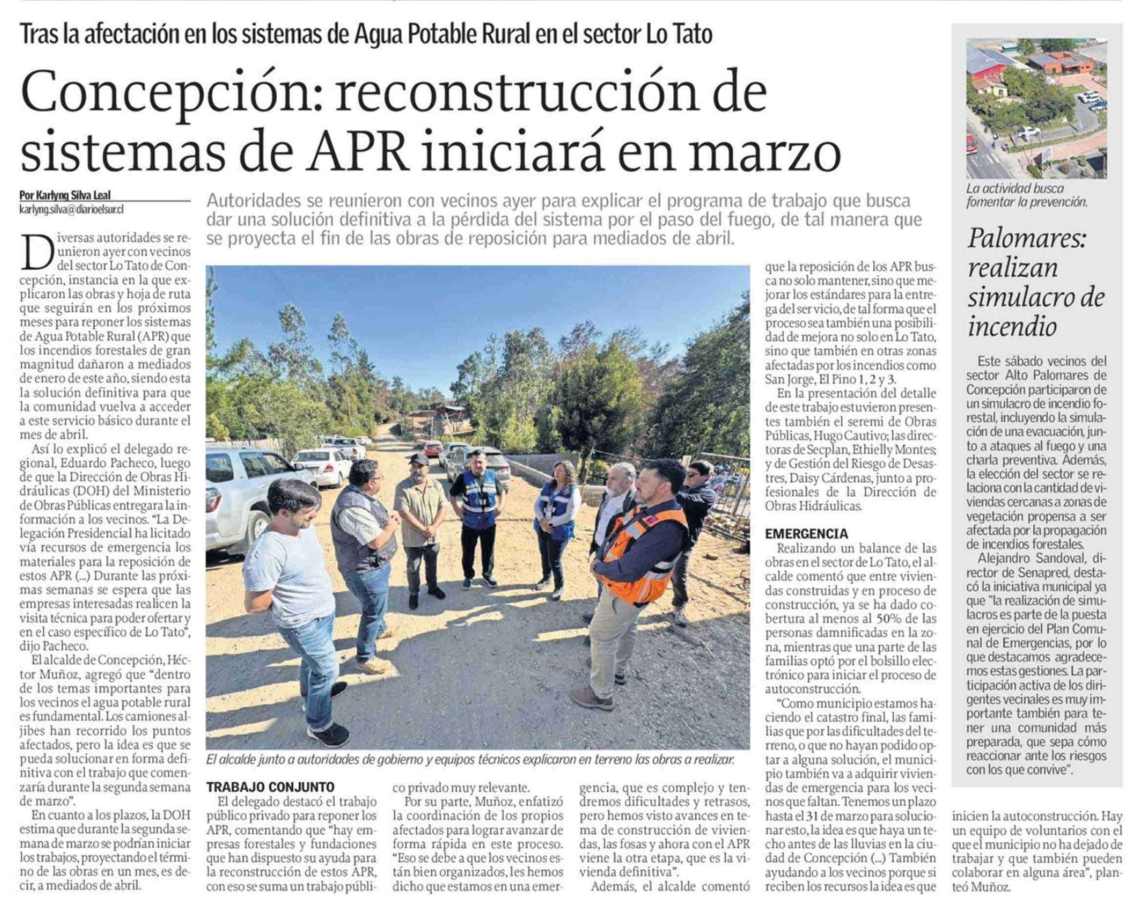 Concepción: reconstrucción de sistemas de APR iniciará en marzo 22-02-2026 El Sur |