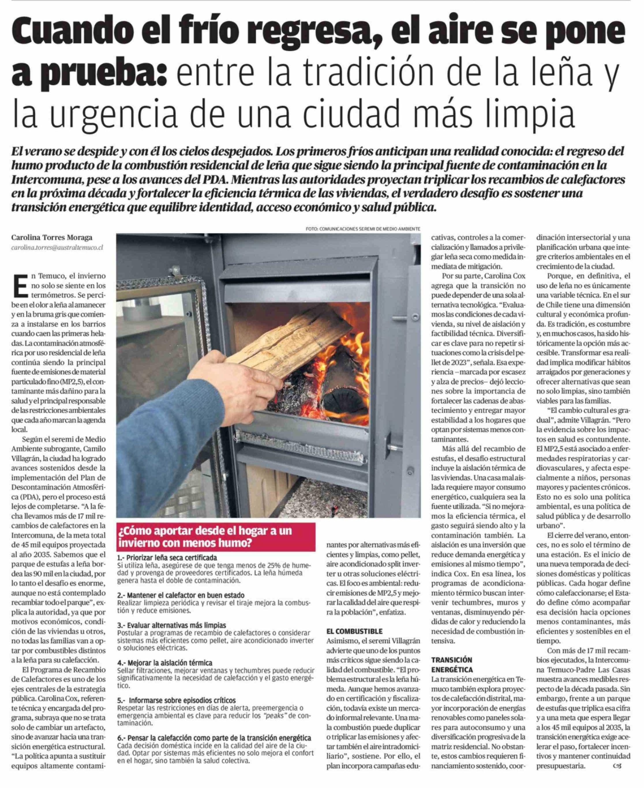 Cuando el frío regresa, el aire se pone a prueba: entre la tradición de la leña y la urgencia de una ciudad más limpia 01-03-2026 El Austral de la Araucanía |