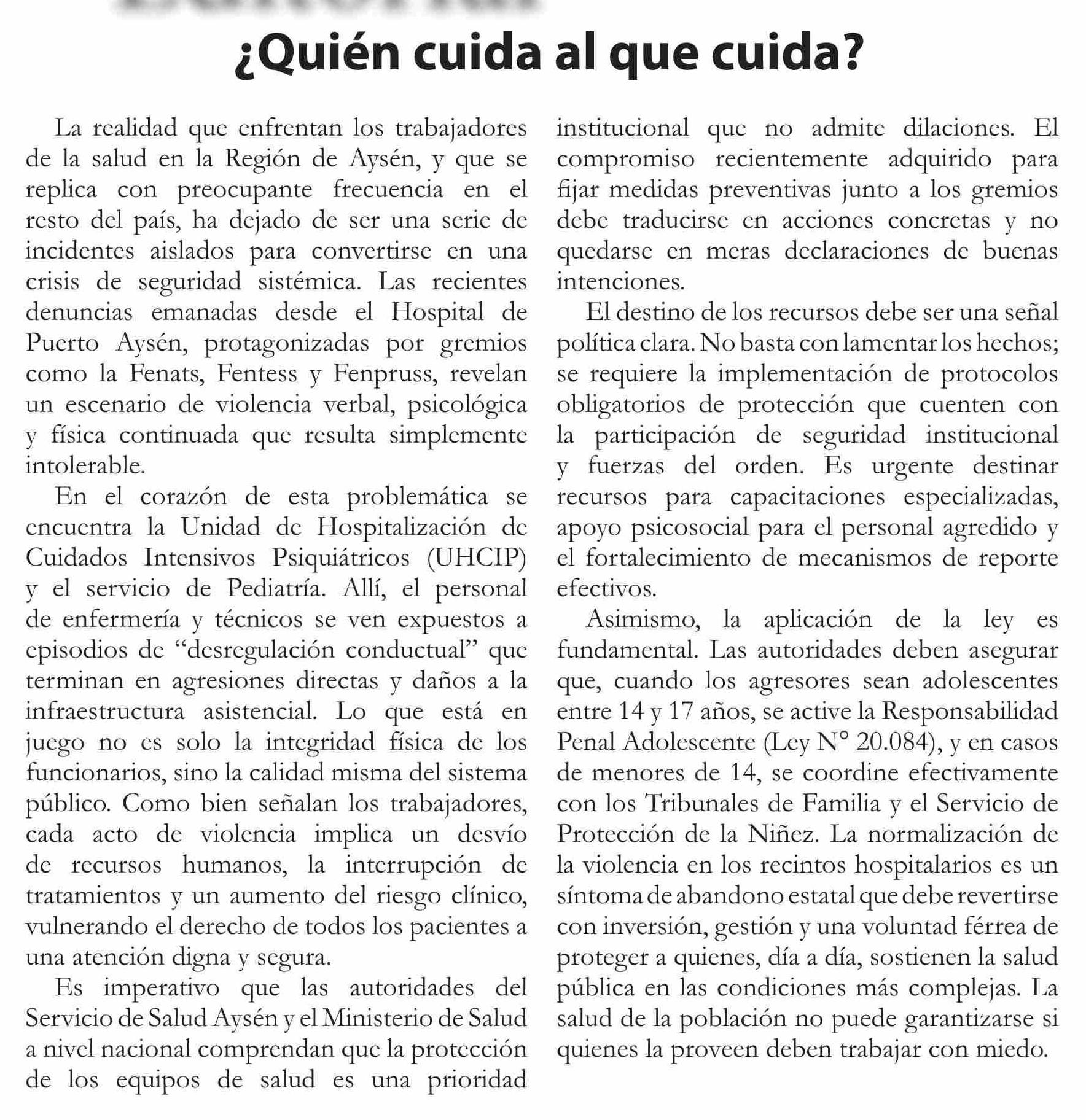 | Fecha: | 24-01-2026 | Sector: | Editorial | Región: | Región Aysén del General Carlos Ibáñez del Campo |
