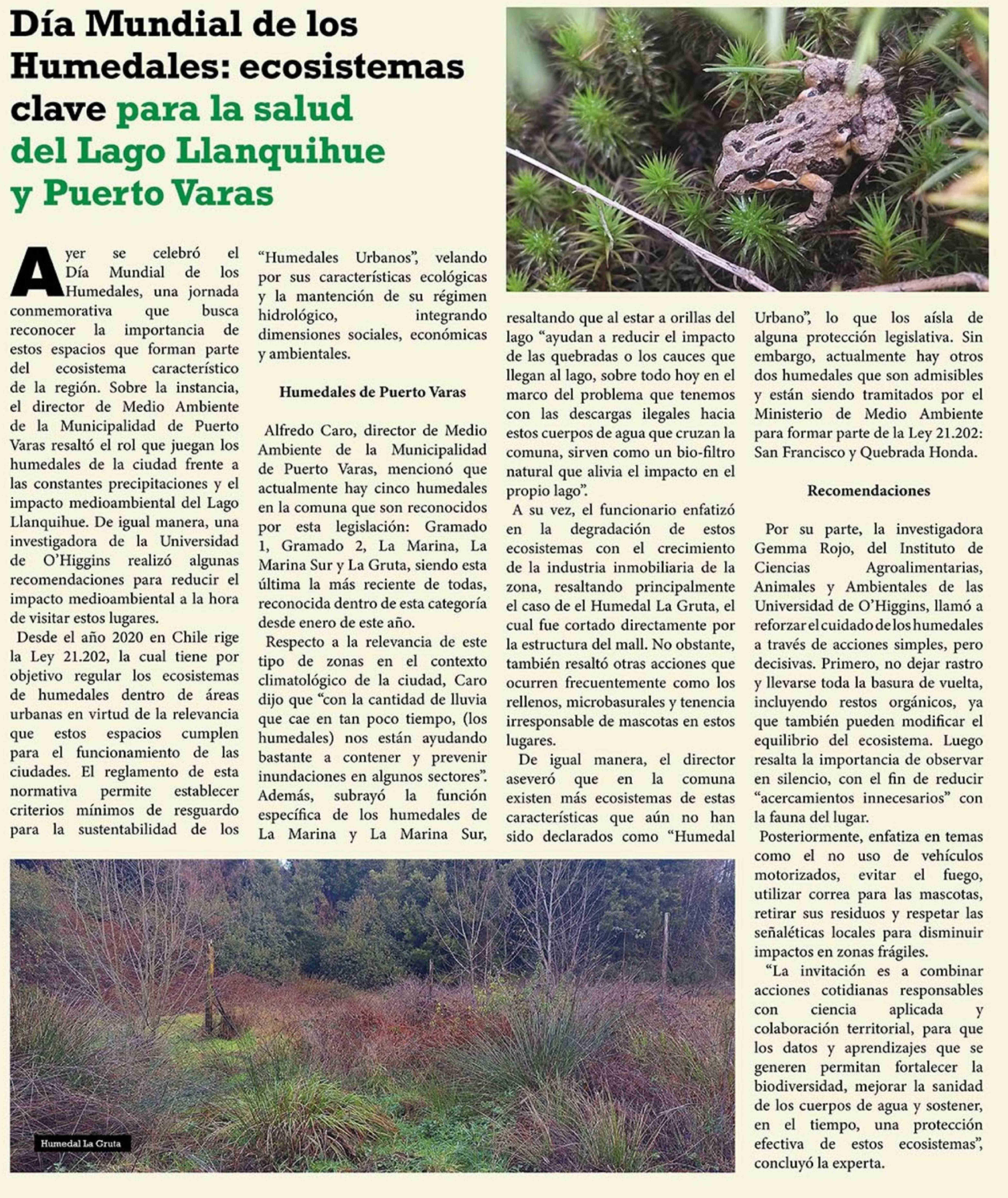 Título: Día Mundial de los Humedales: ecosistemas clave para la salud del Lago Llanquihue y Puerto Varas