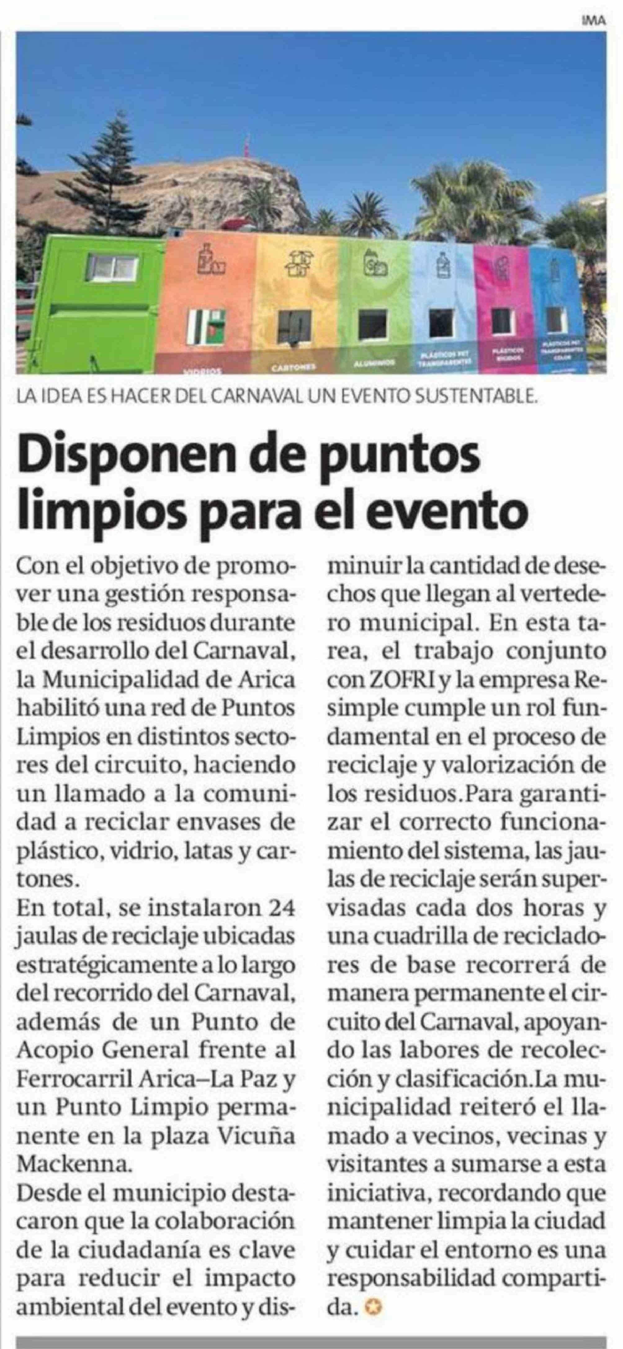 Disponen de puntos limpios para el evento 31-01-2026 La Estrella de Arica |