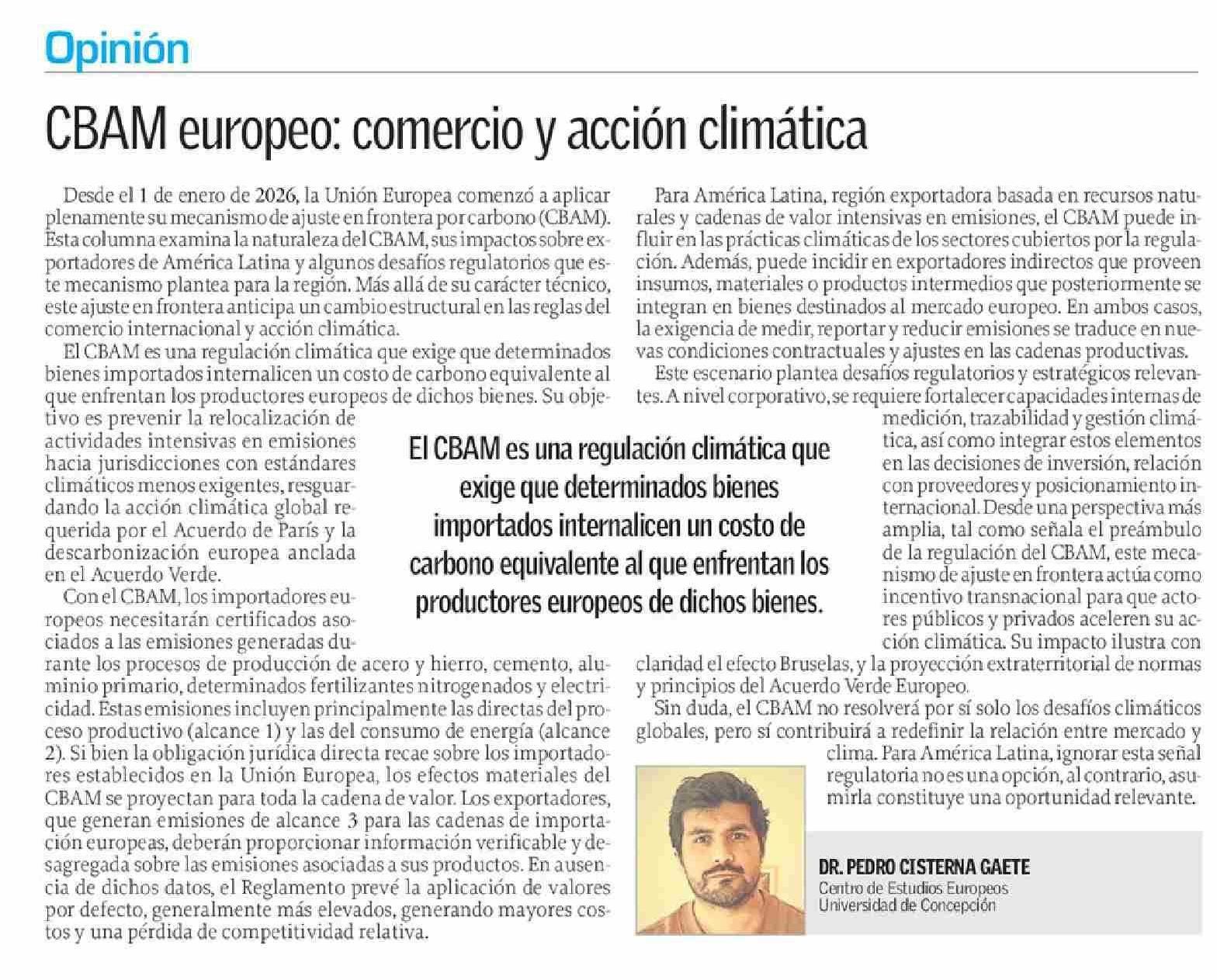 COLUMNAS DE OPINIÓN: comercio y acción climática 17-02-2026 El Sur |