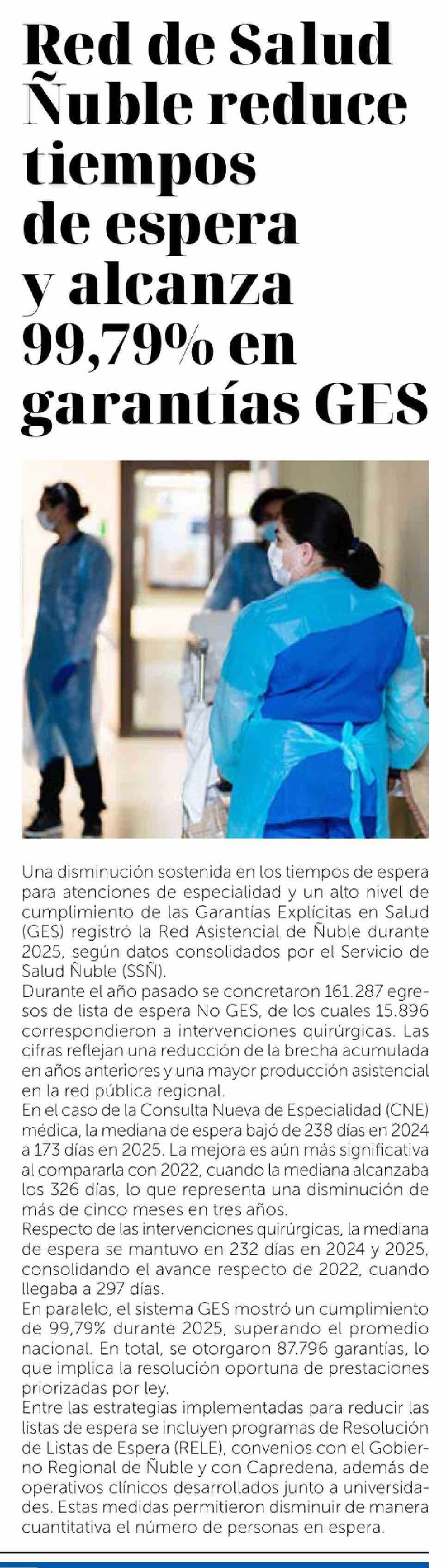 Título: Red de Salud Ñuble reduce tiempos de espera y alcanza 99,79% en garantías GES